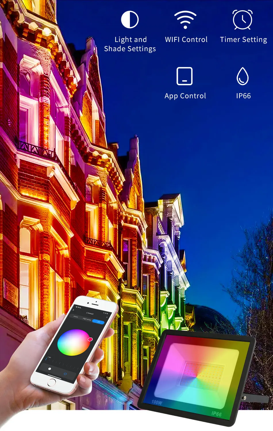 - Emitting Color: RGB+Warm White+Cold White