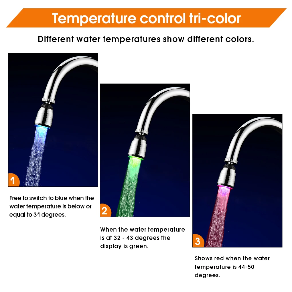 LED Lighting: This kind of water faucet is designed with light, it will glow when streaming, giving you a good mood and decorating your bathroom and kitchen interesting.