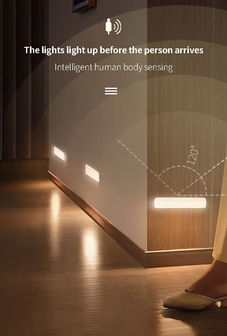 3.Vous pouvez le coller à côté du lit, du placard, lorsque vous n’avez pas de source de lumière la nuit, sortez du lit lorsque vous passez, il s’allumera automatiquement!