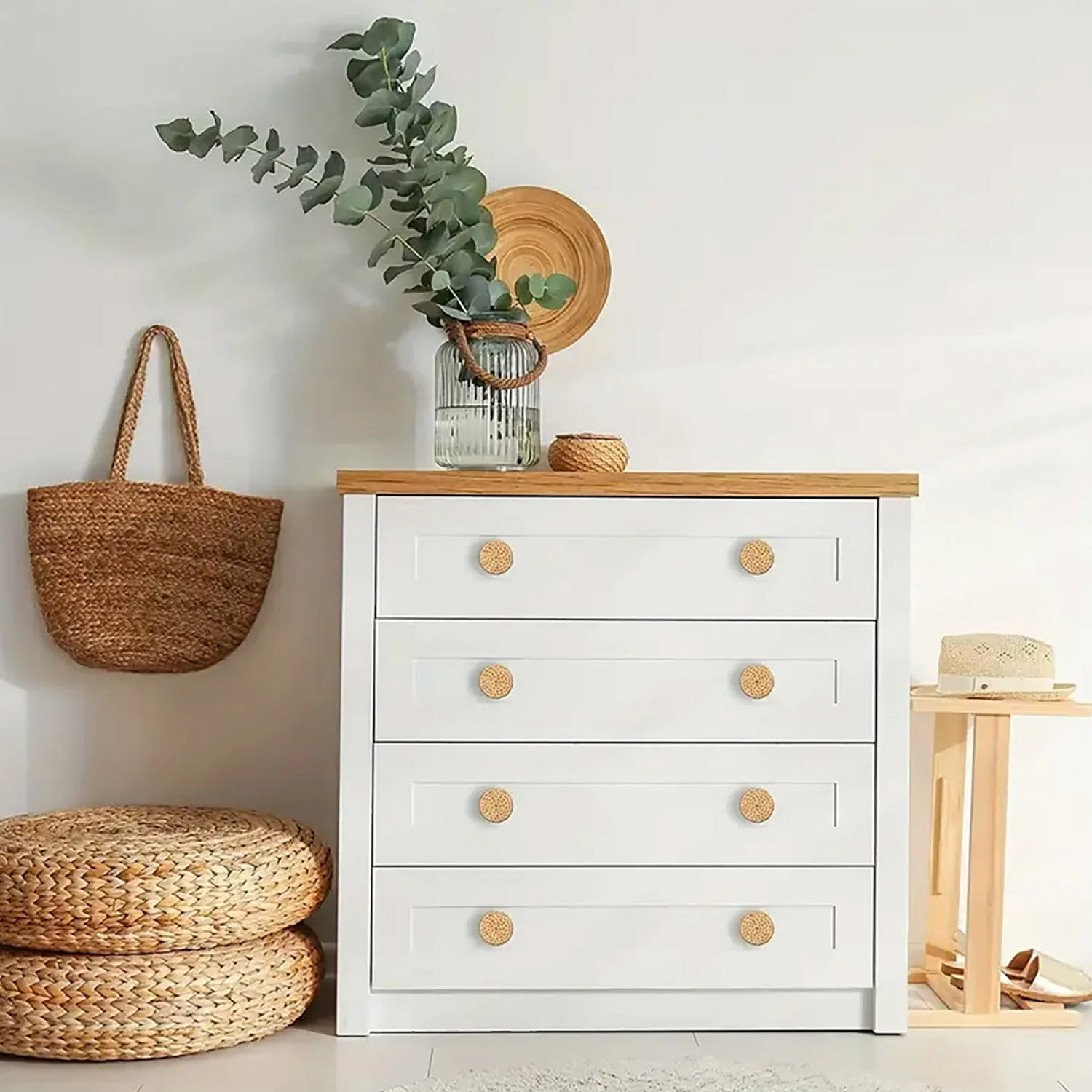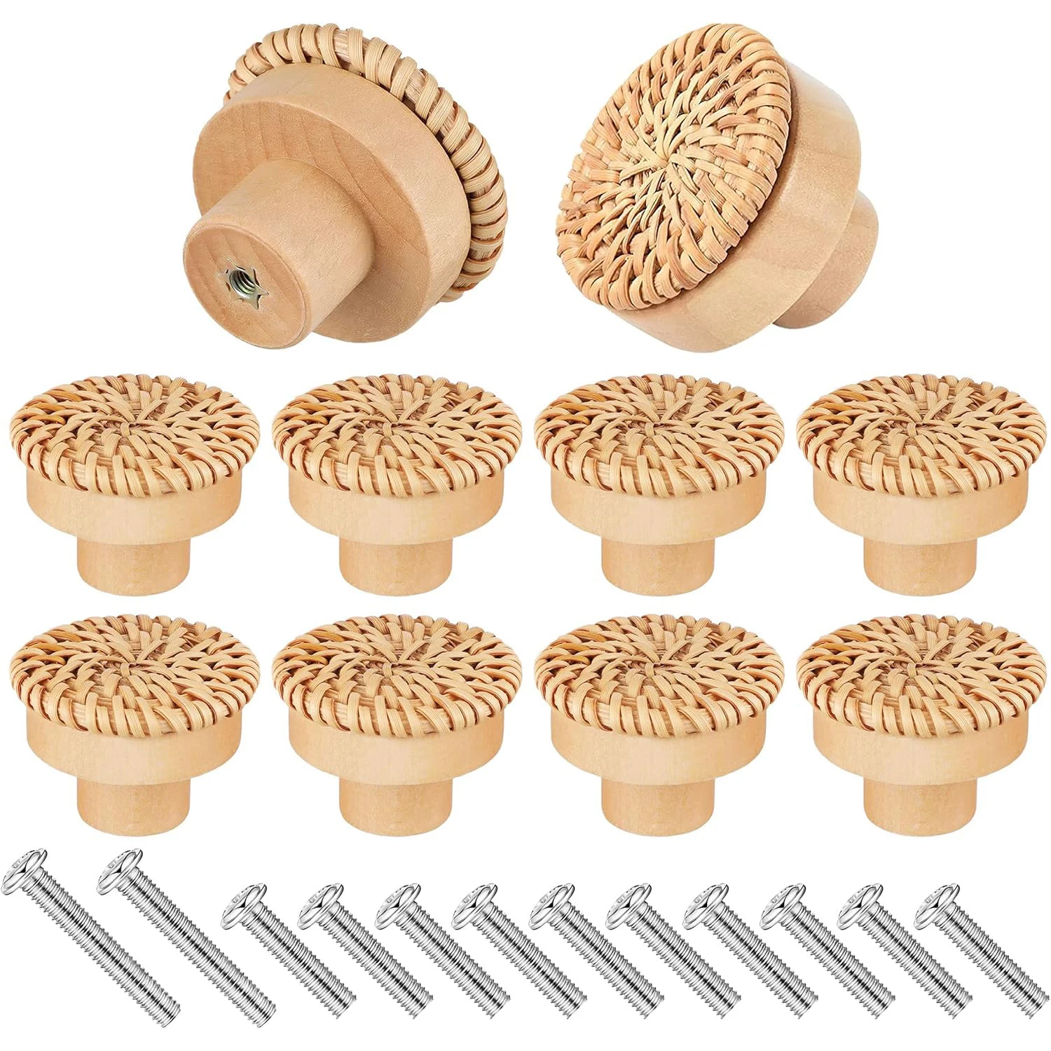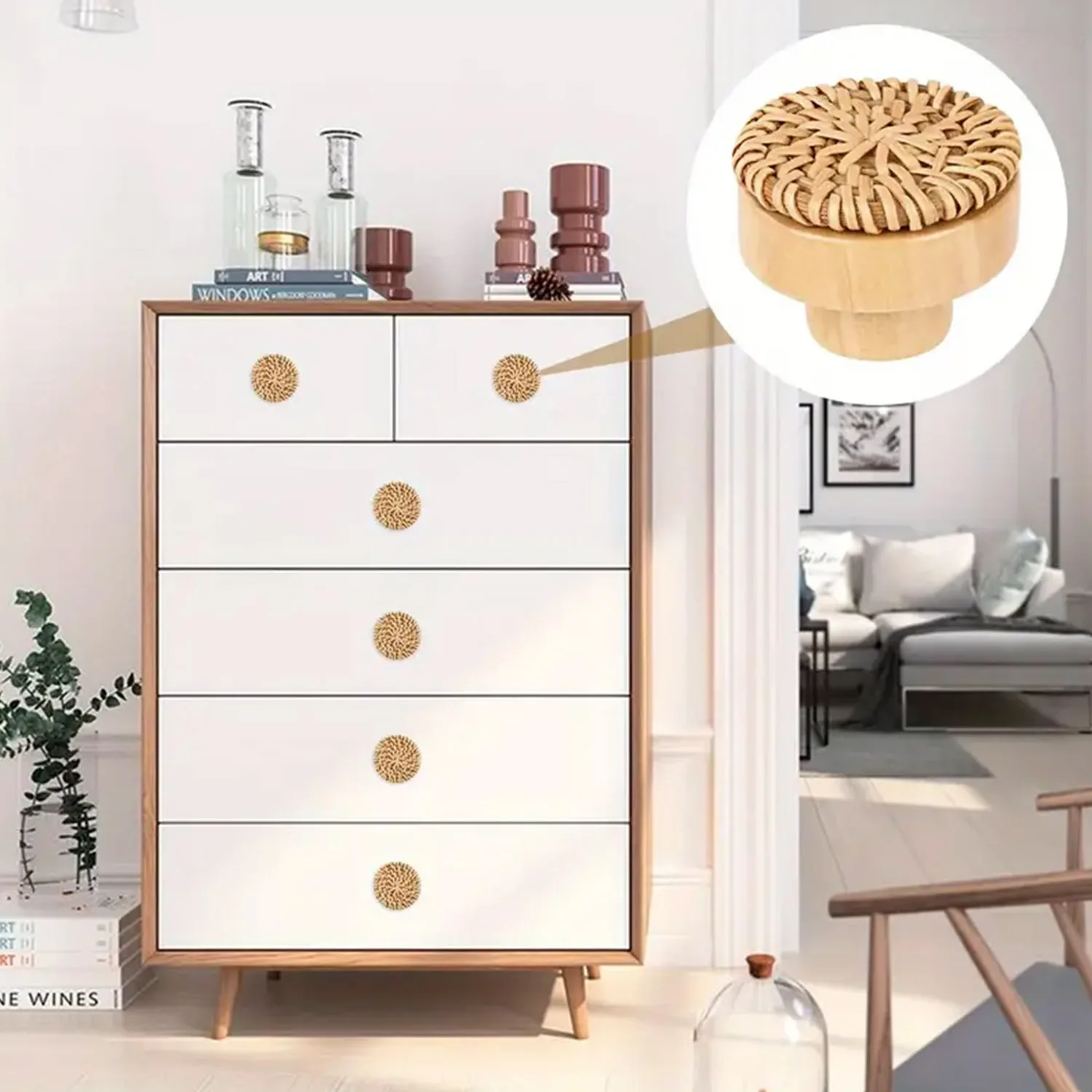 Décoration intérieure de style bohème: chaque bouton de commode en rotin est finement tissé à la main avec du rotin, combiné avec du bois naturel, le gardant dans son état le plus naturel et original, correspondant parfaitement à votre maison de style bohème, pour vous Ajoutez une décoration plus chic aux tiroirs, commodes et armoires de votre maison.