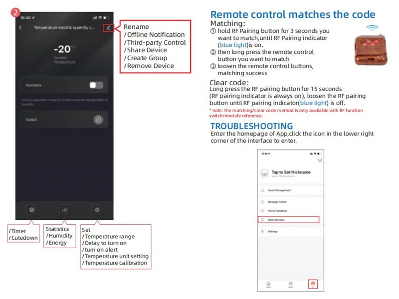 * Marche/arrêt à distance: allumer/éteindre les appareils électriques de n’importe où, avec un capteur de température étanche de haute précision.