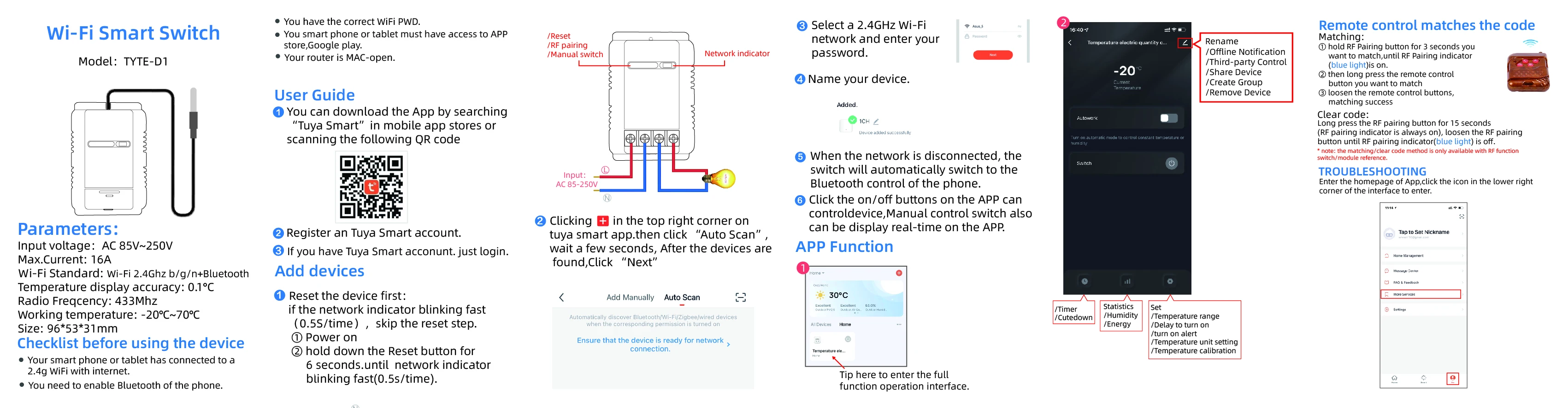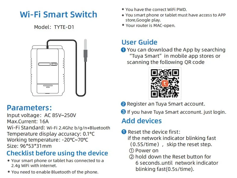 REMARQUE: le capteur ne peut détecter que la température, le commutateur WiFi doit fonctionner dans un environnement WiFi de 2.4GHz.