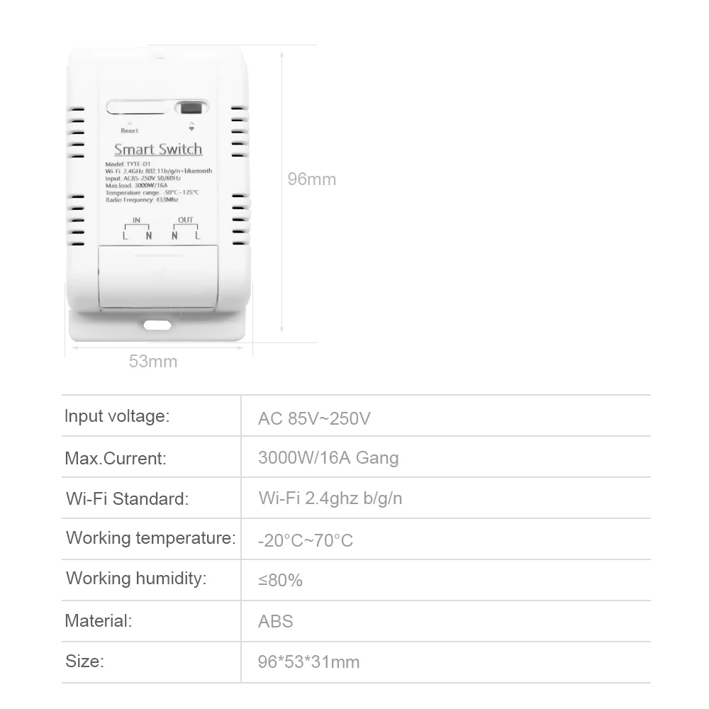 Taille de l’interrupteur intelligent: 96*53*31 (mm)