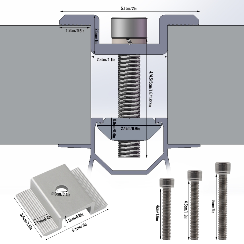 Ensemble de supports photovoltaïques : 12 jeux de pinces intermédiaires pour panneaux solaires, chaque ensemble contient (1x support ; 1x bloc de pression, 1x vis à tête creuse M8, 1 entretoise de renfort), les vis fournissent trois types de filetage Dimensions (40 mm, 45 mm, 50 mm), la distribution correspond aux panneaux photovoltaïques installés sur (30 mm, 35 mm, 40 mm).