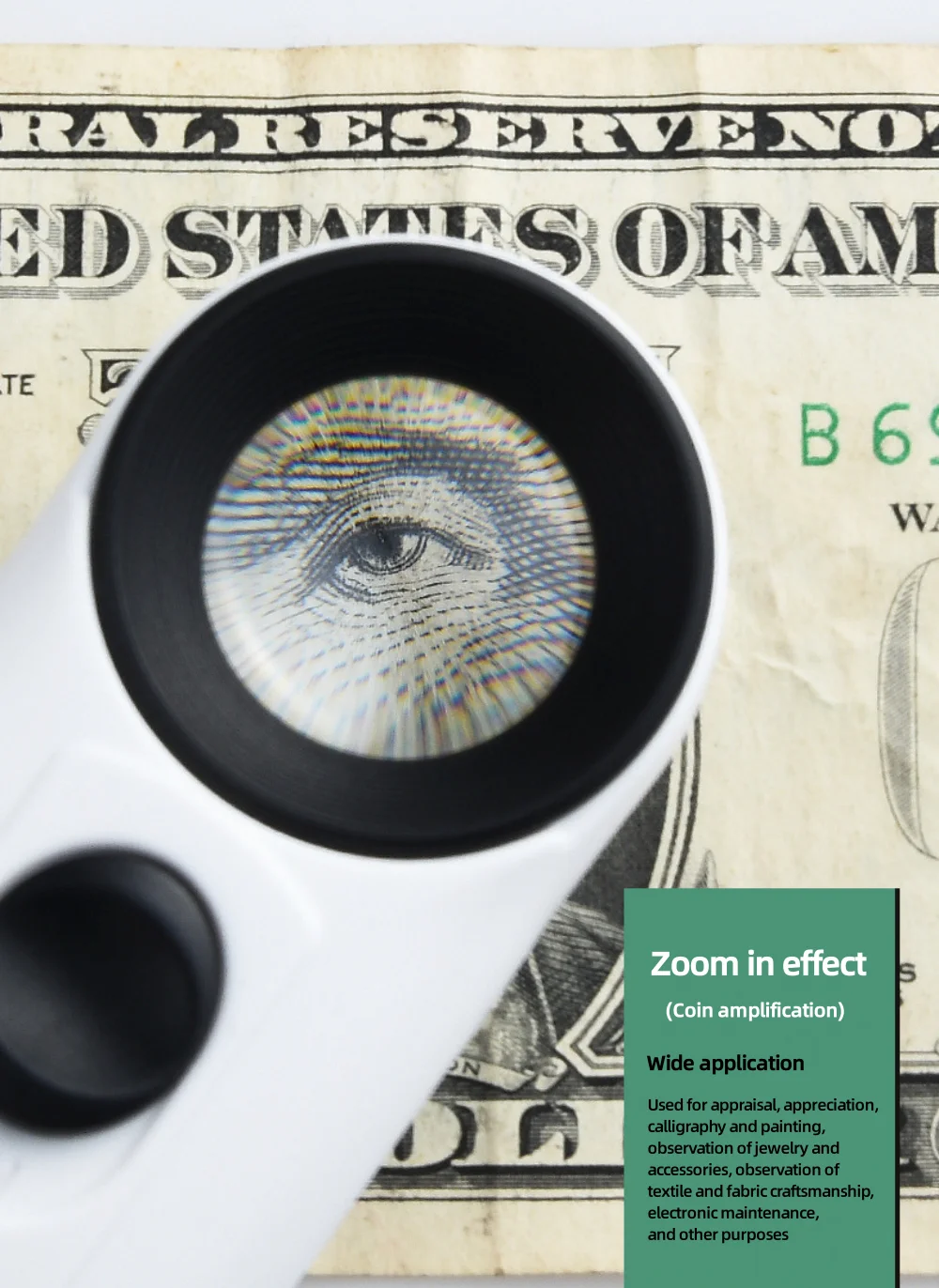 • Utilisation polyvalente:Cette loupe peut être utilisée pour identifier les bijoux, les diamants, le jade et les miroirs, ce qui en fait un outil polyvalent à des fins diverses.