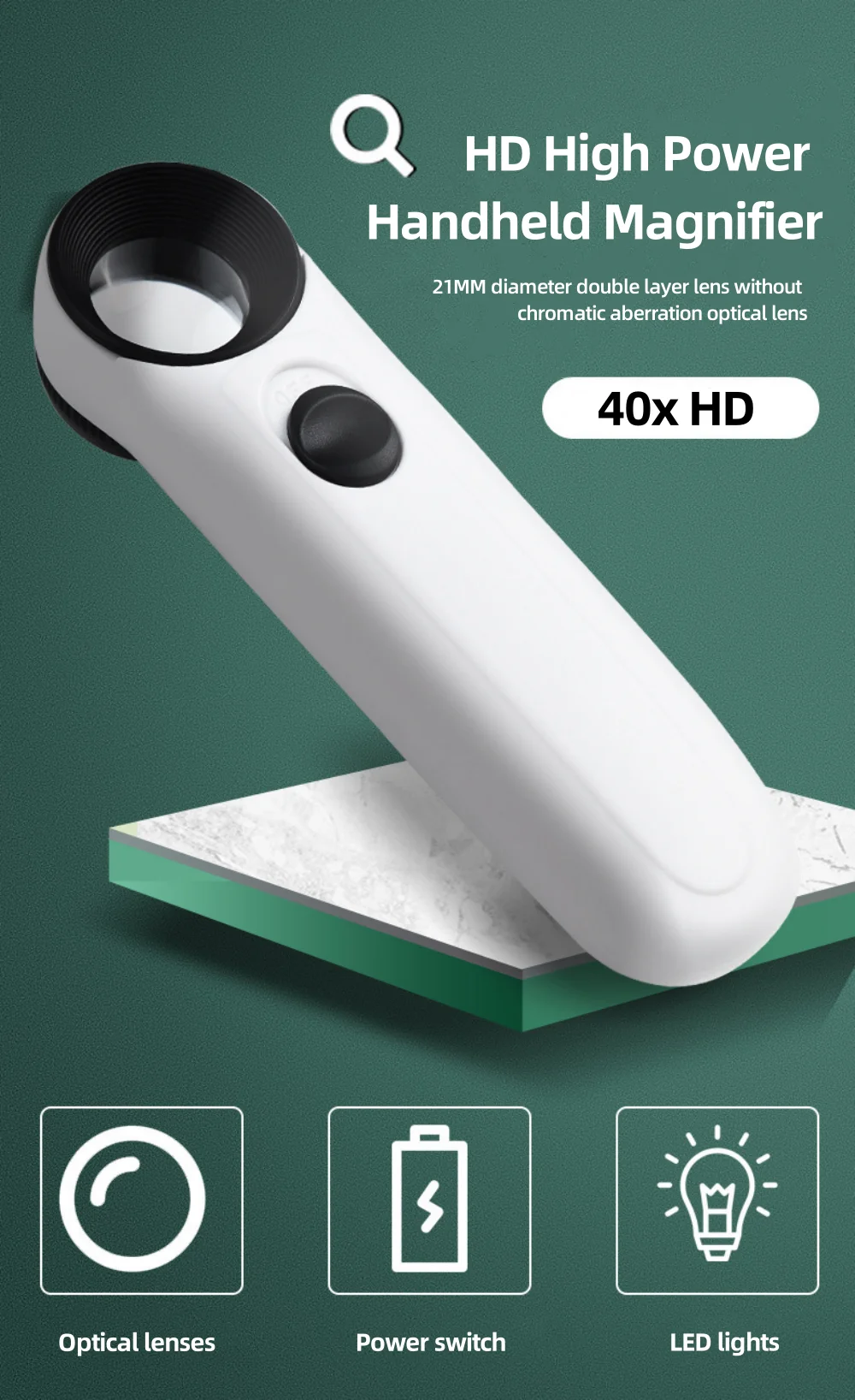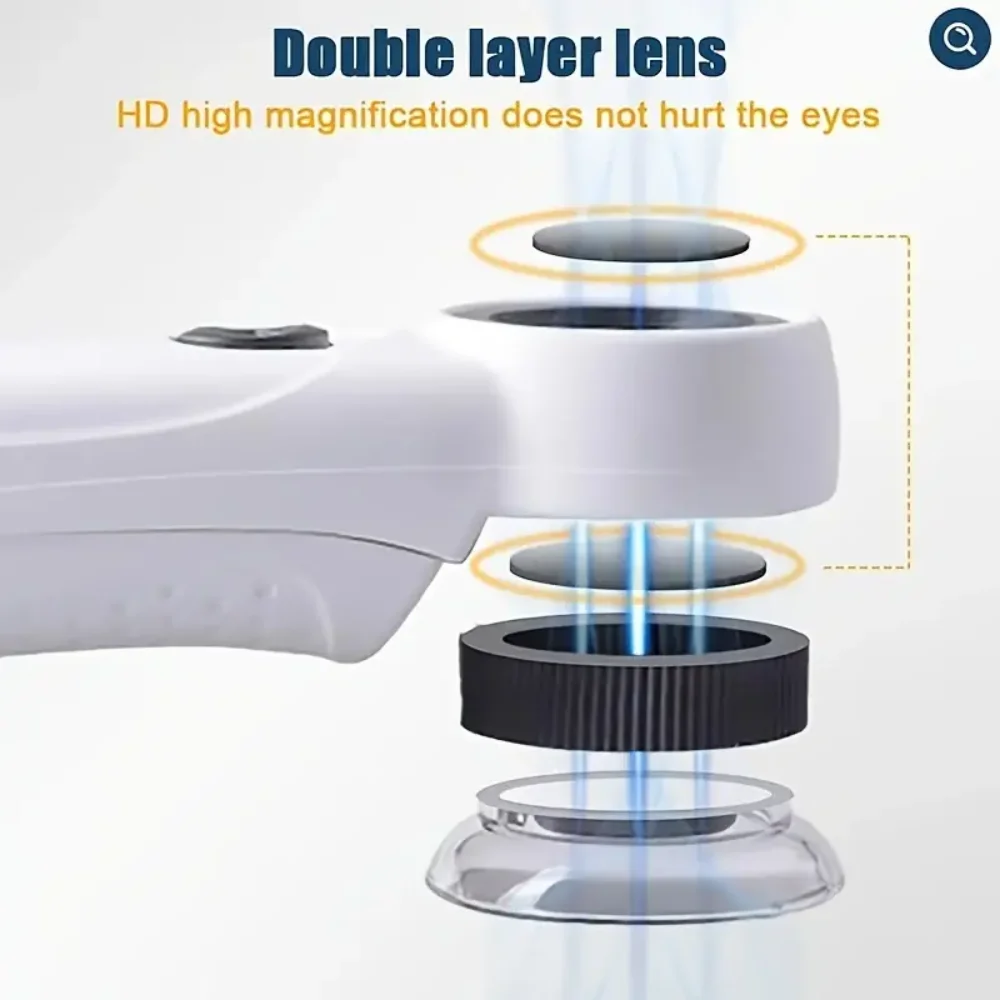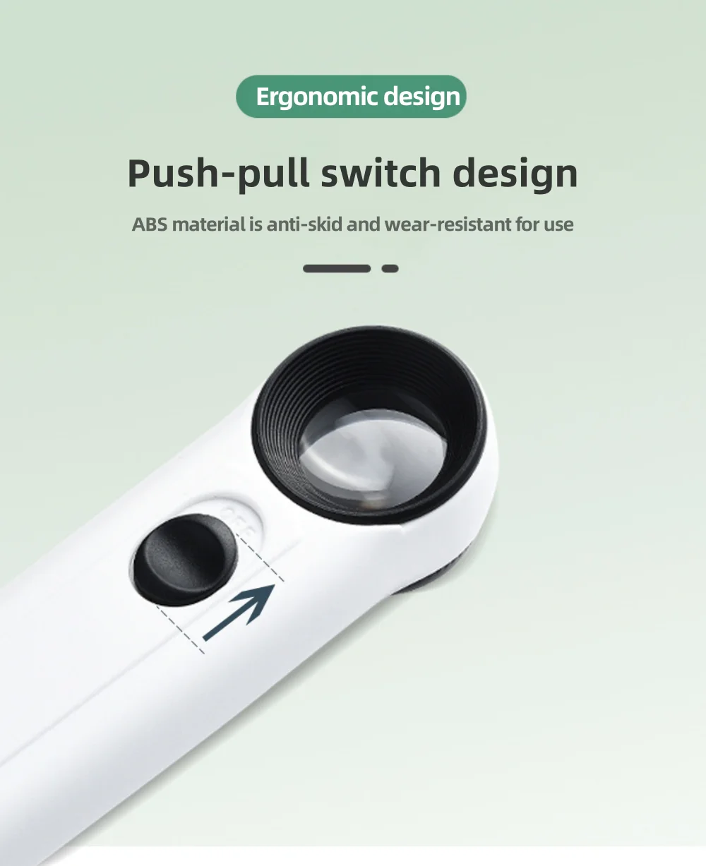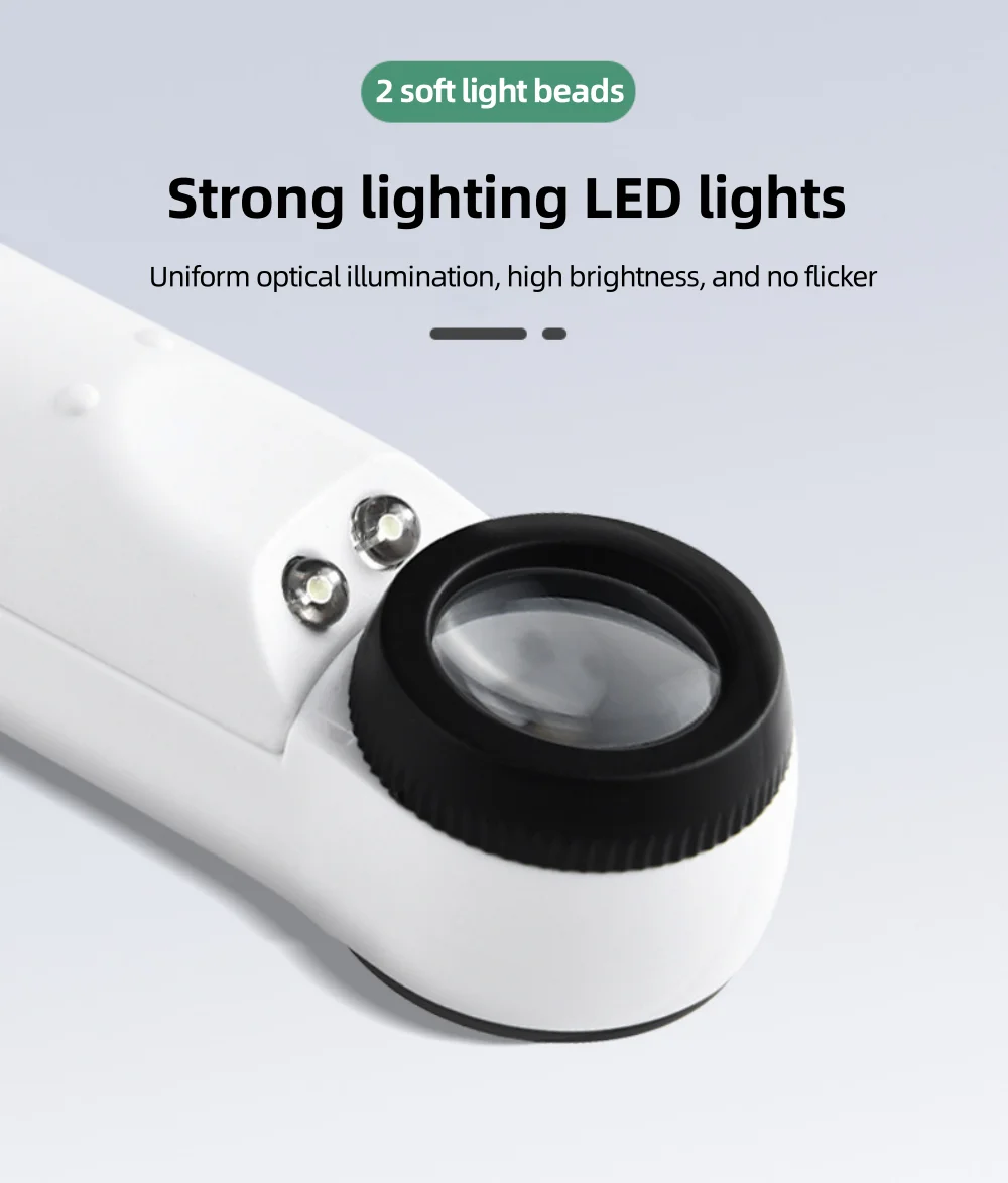 • Loupe haute définition:La loupe portable 40X est livrée avec deux lumières LED et une loupe HD qui fournit des images claires et détaillées.