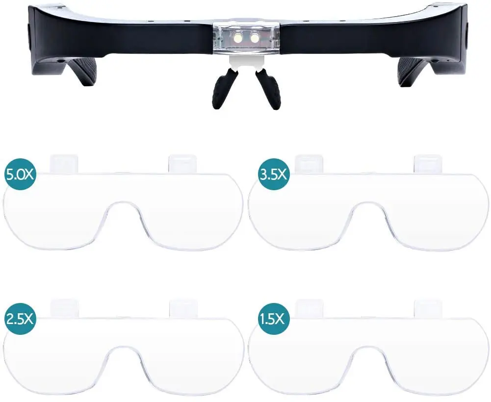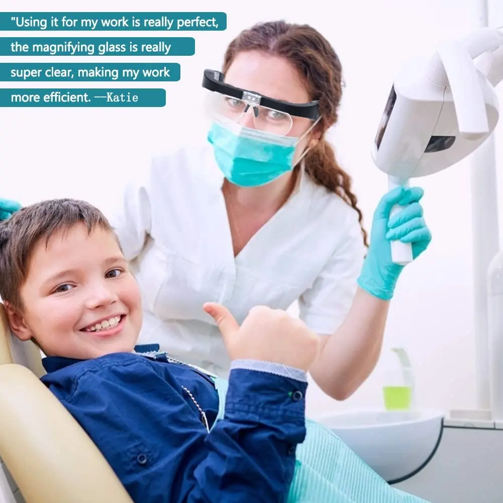 4. Comfortable and easy to use: ergonomic eyeglasses frame, comfortable to wear, better fixed in front of the eyes. The headband effectively prevents falls and makes working long hours easier.