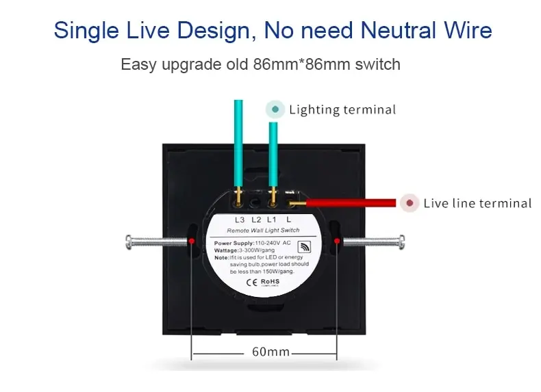 • Capteur de lumière de mur de puissance:Équipé d’un capteur d’éclairage mural électrique, cet interrupteur permet d’économiser de l’énergie en éteignant automatiquement les lumières lorsqu’il n’est pas utilisé.