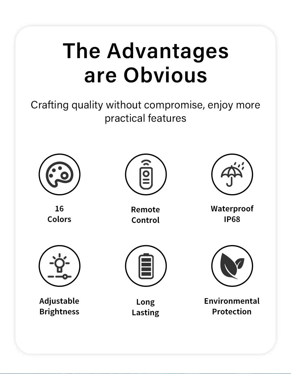 Le boîtier des lumières est en PVC de haute qualité, durable et résistant à l’usure, pas facile à casser.