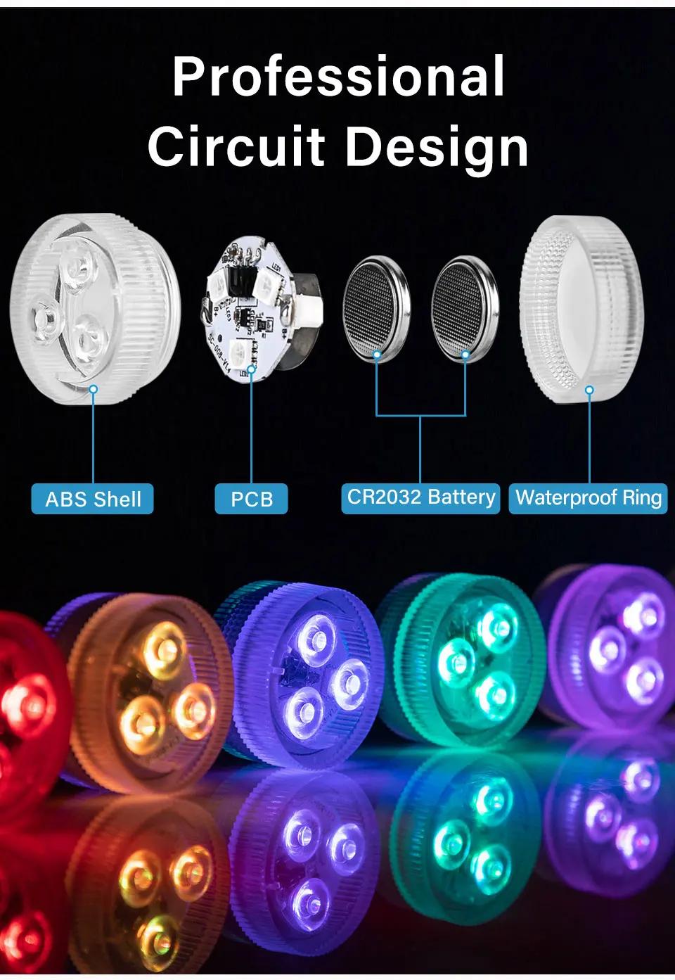 Conception étanche IP68, peut utiliser comme lumière de décoration de vase, de bols, d’aquarium et de fête.