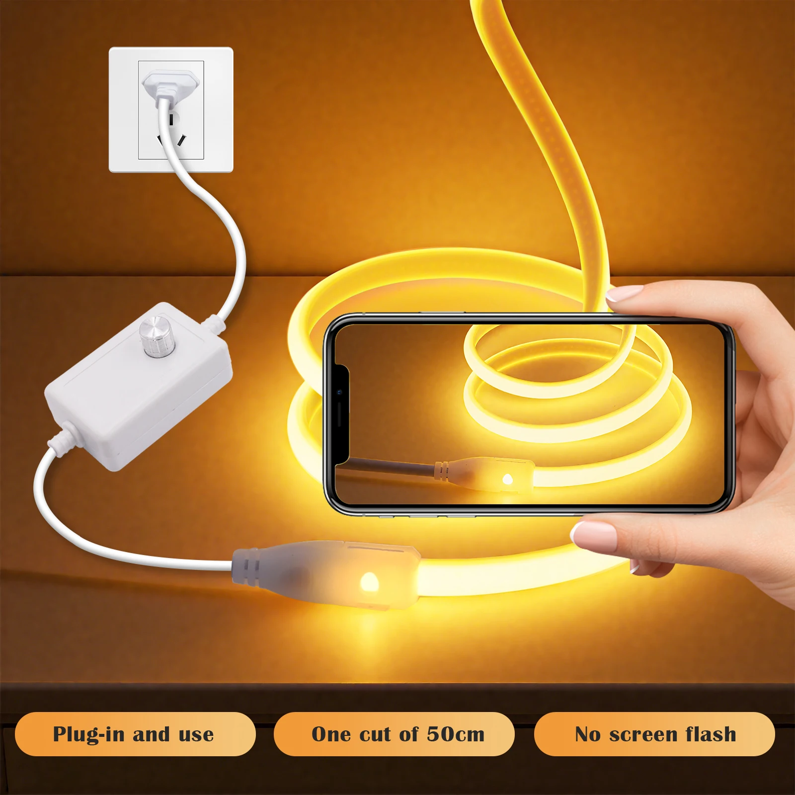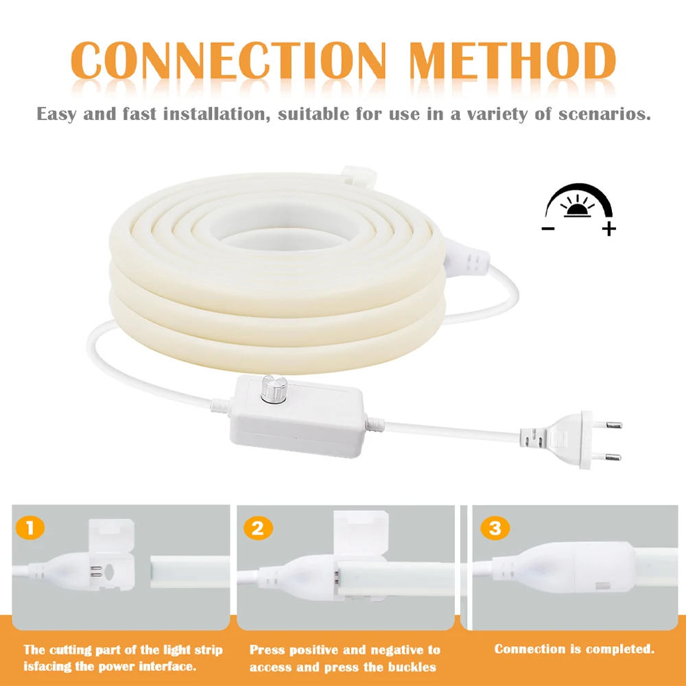 La bande lumineuse haute tension ne peut pas être enroulée pour s’allumer, car cela pourrait faire fondre et brûler la bande lumineuse.La bande lumineuse doit être étalée!!!