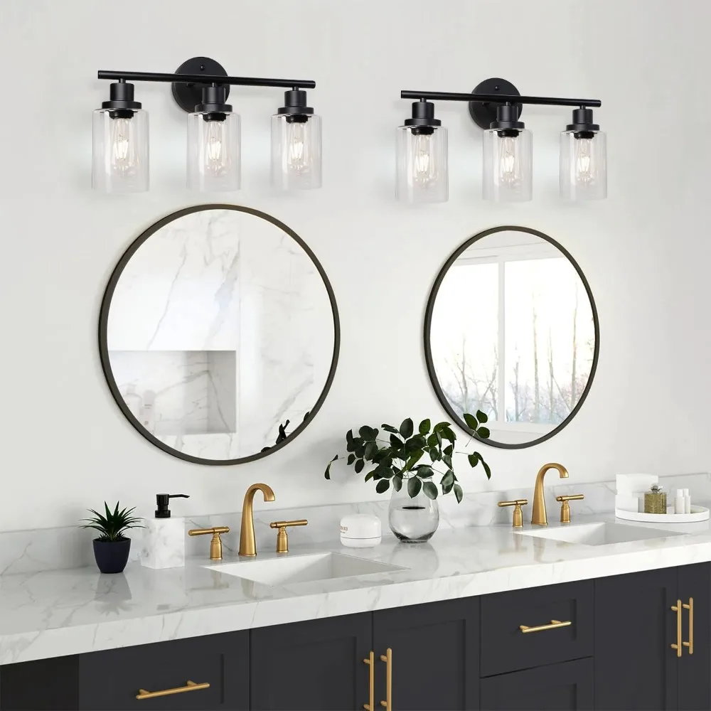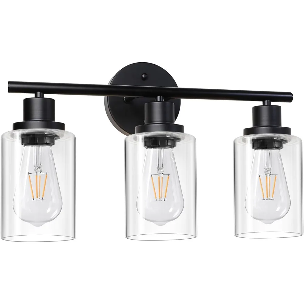 Luminaires muraux modernes pour miroir de salle de bain, lumières de vanité noires à 3 lumières avec verre transparent pour salle de bain, salon, chambre à coucher, couloir