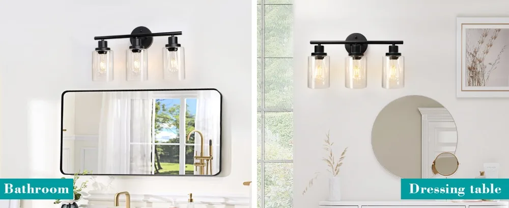 Soyez le premier à laisser votre avis sur “Luminaires muraux modernes pour miroir de salle de bain, lumières de vanité noires à 3 lumières avec verre transparent pour salle de bain, salon, chambre à coucher, couloir”