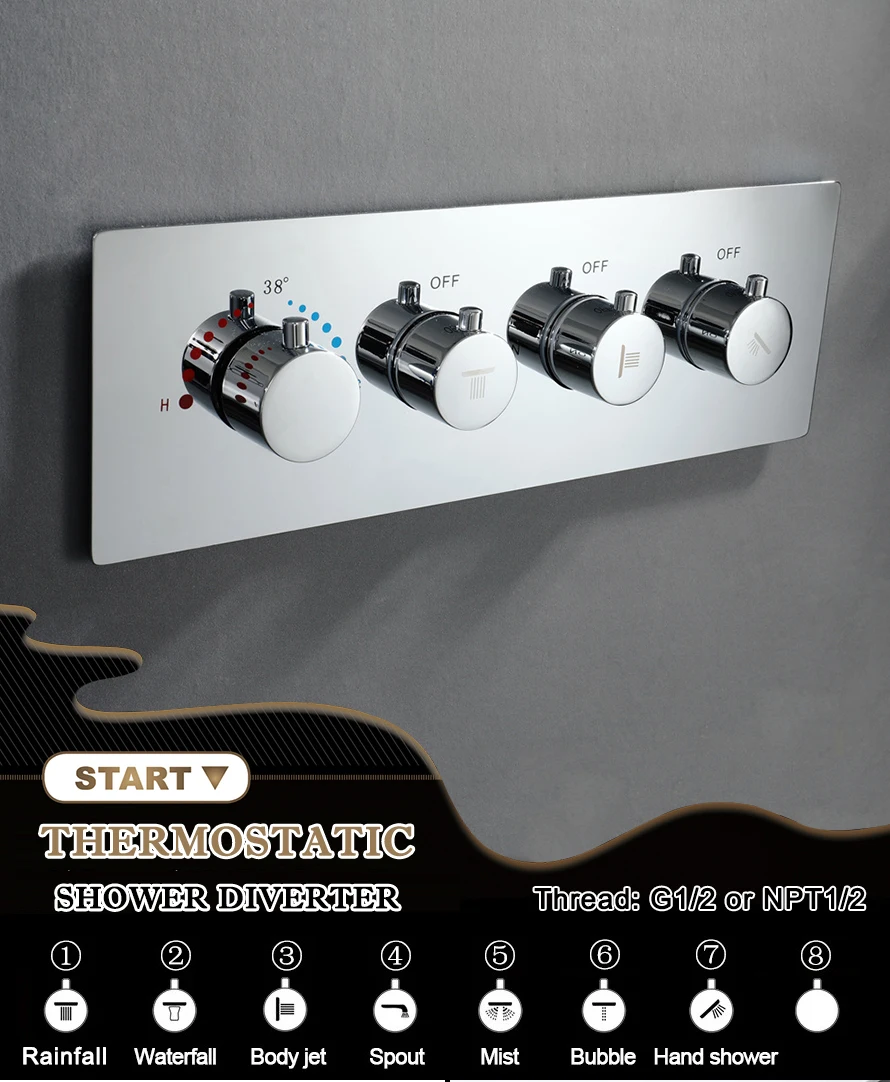 - Thermostatic valve shower: Shower mixer
