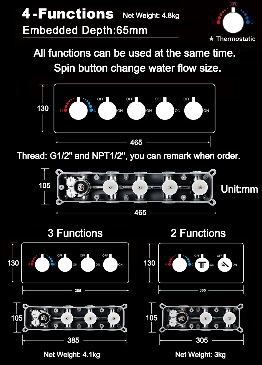- Shower Valve Functions: 2 Or 3 Or 4 Functions