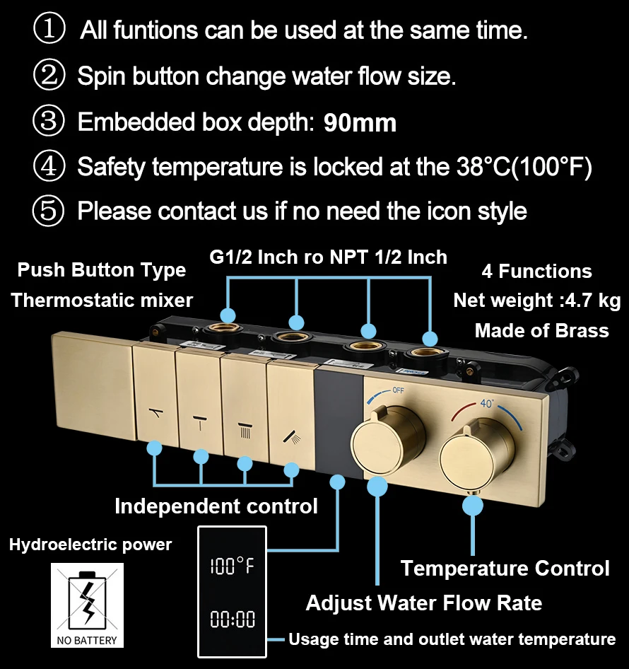- Shower Controller Material: Brass