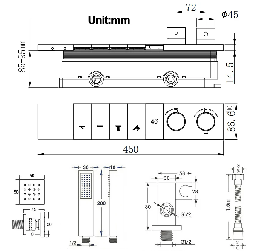 - Shower Diverter Size: 450*86mm