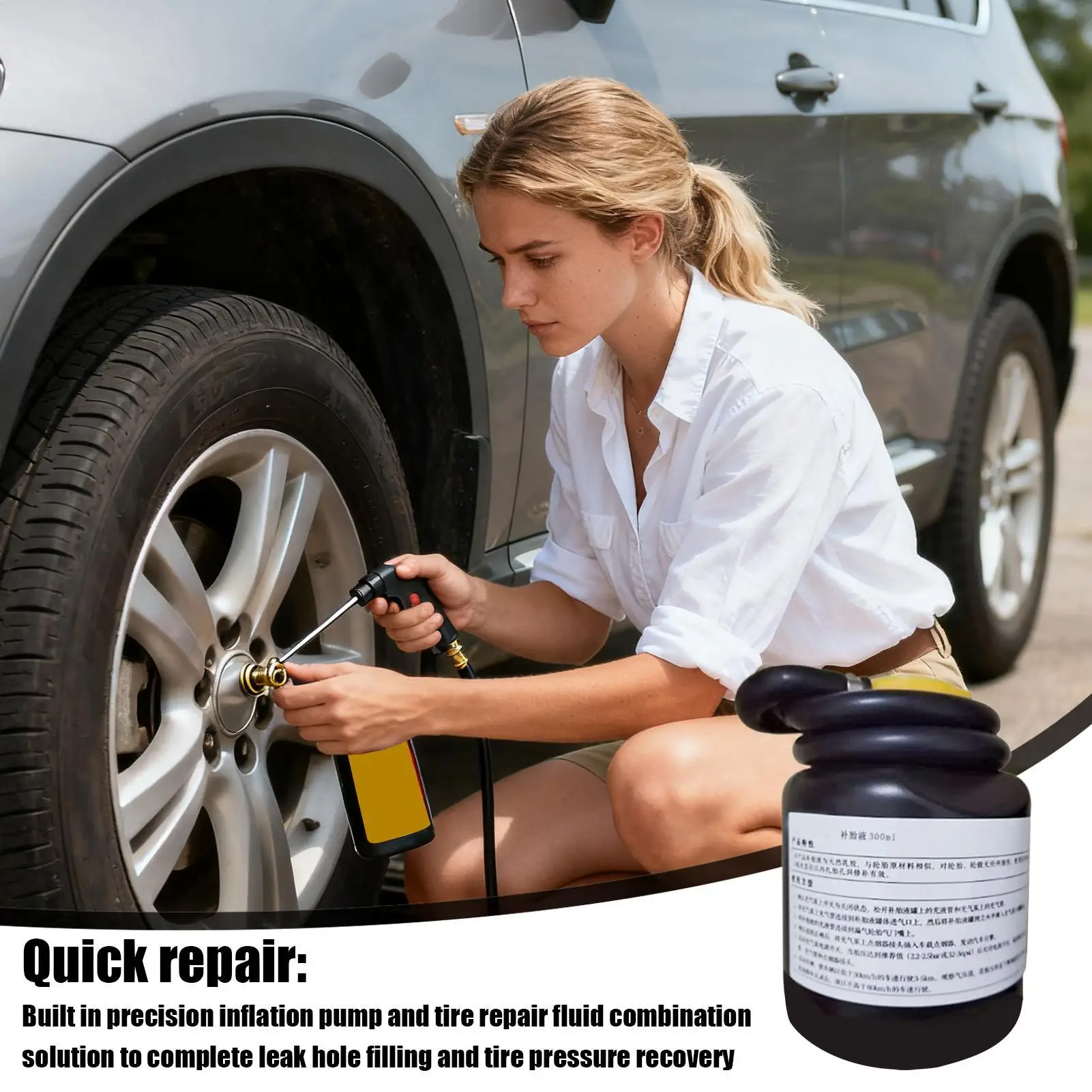 1.Solution de réparation rapide : grâce à sa capacité à remplir rapidement les crevaisons et à restaurer la pression des pneus, ce scellant pour pneus de voiture offre une solution fiable pour les conducteurs présentant des dommages soudains aux pneus ;la pompe de précision intégrée simplifie l’utilisation, garantissant une perturbation minimale lors des déplacements en voiture ou des déplacements quotidiens