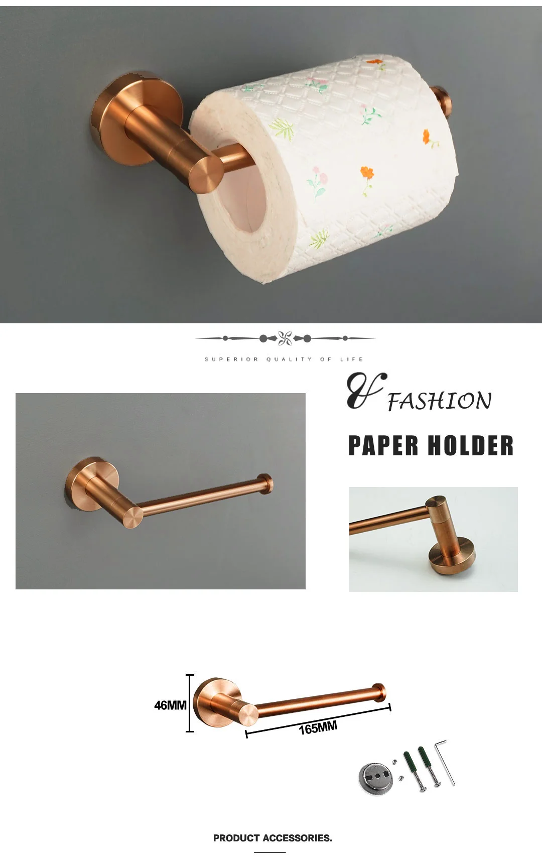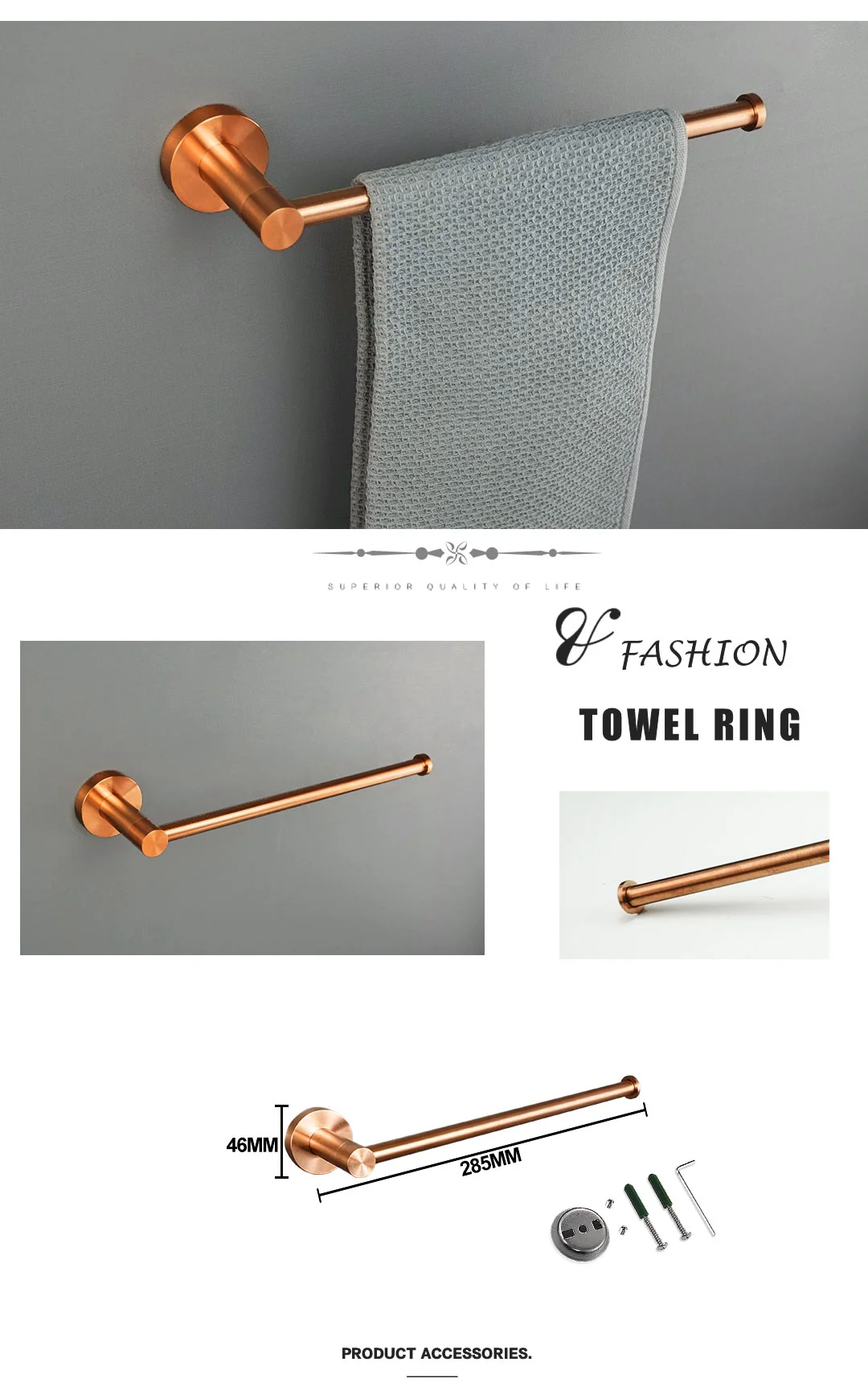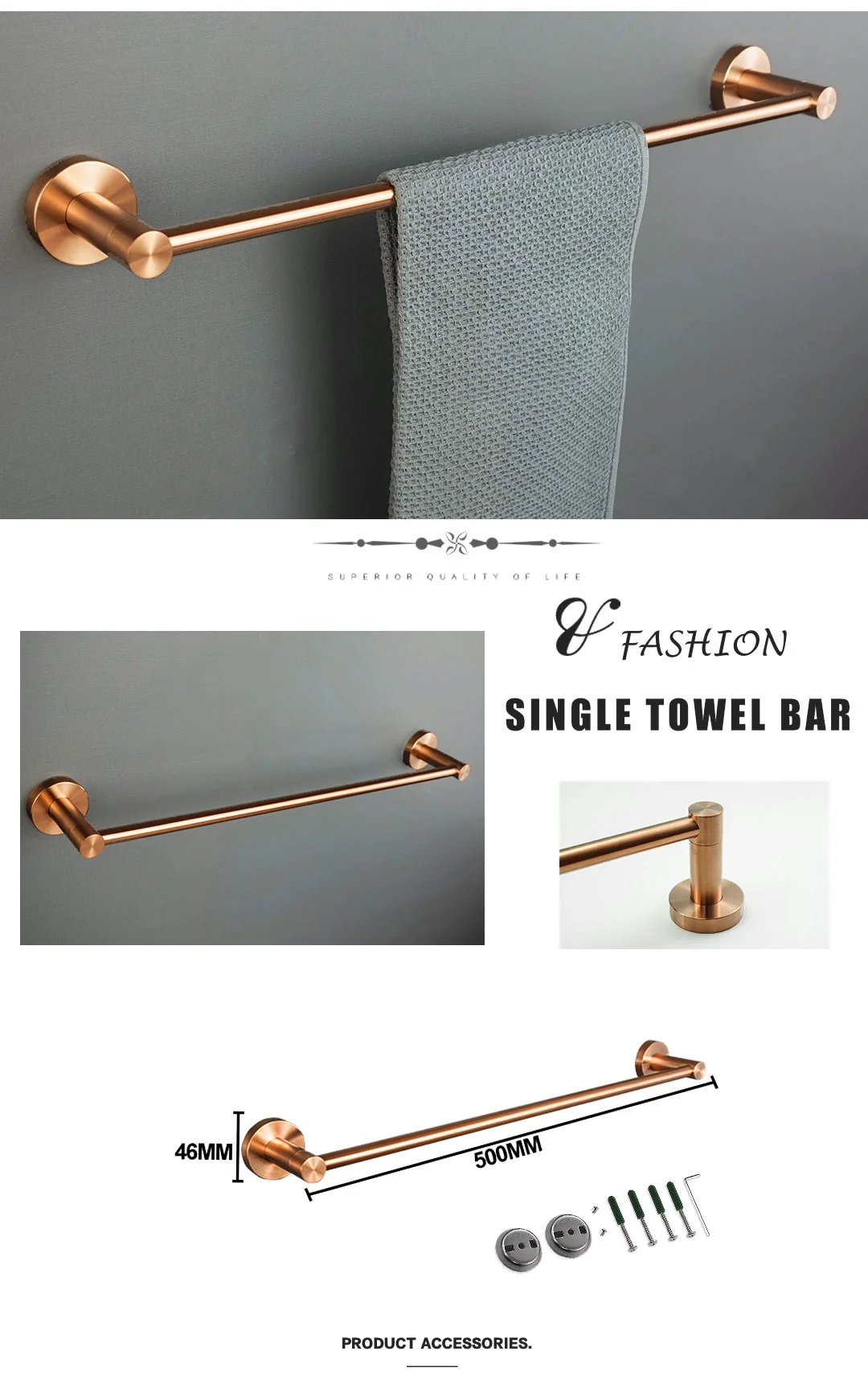 Matériel de salle de bains en or Rose brossé, porte-serviettes en acier inoxydable 304, porte-papier hygiénique, porte-savon, barre à serviettes, accessoires de bain