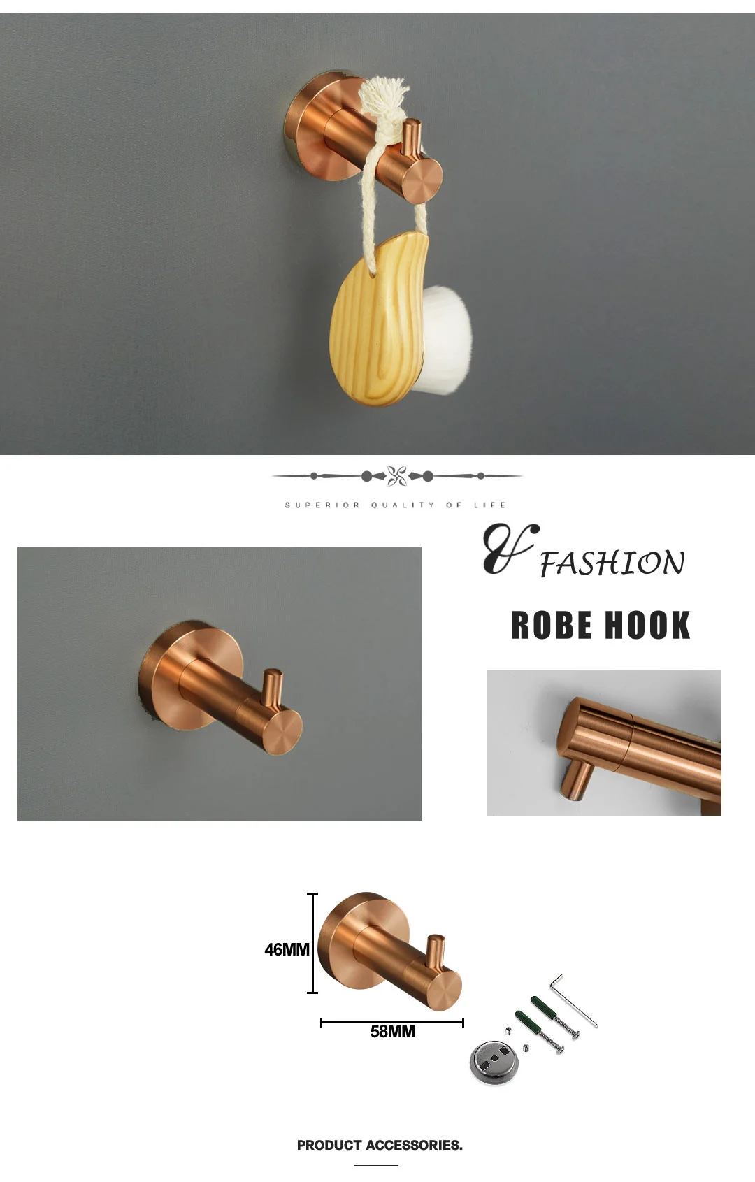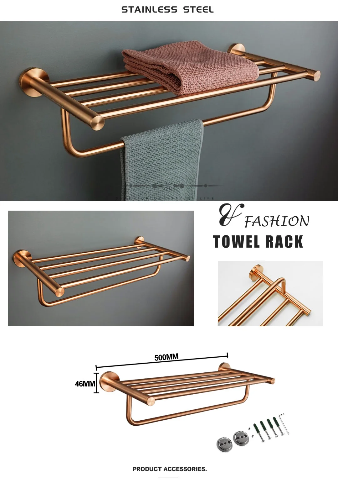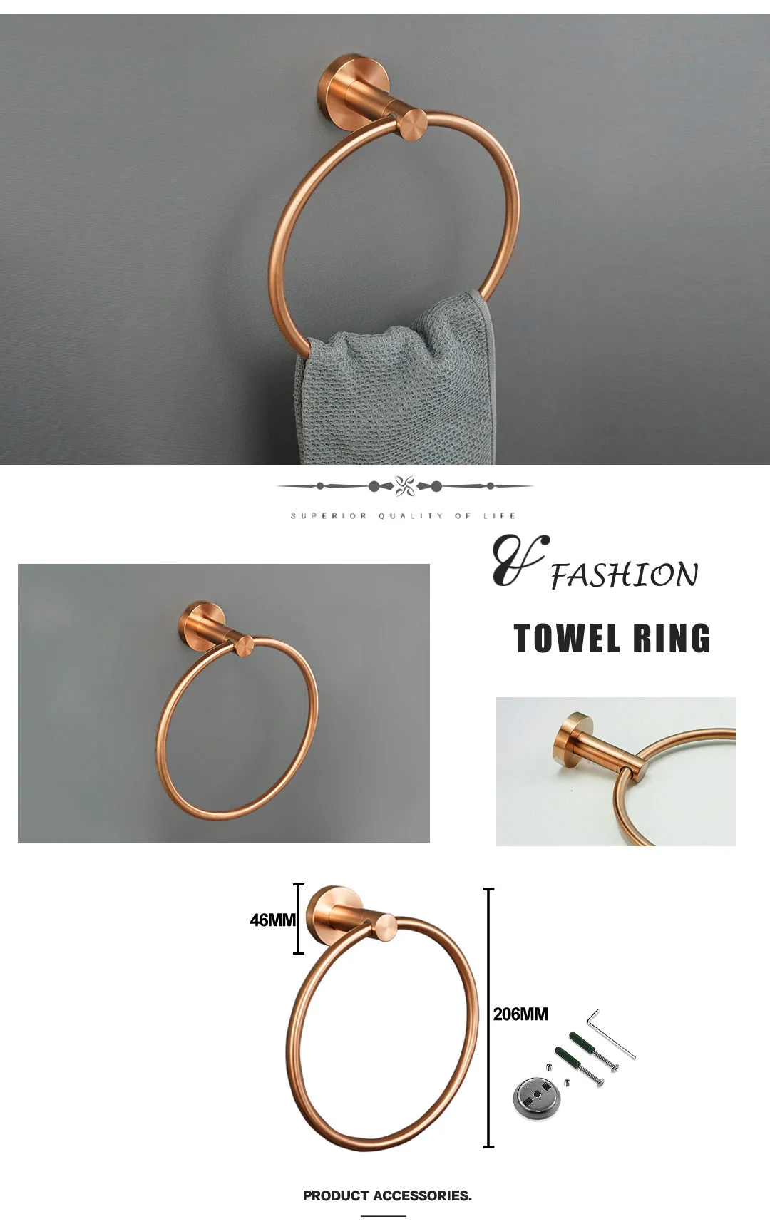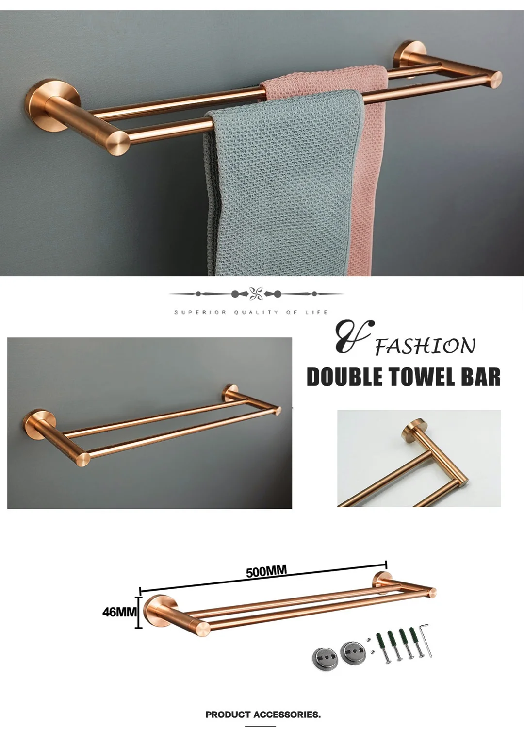 Matériel de salle de bains en or Rose brossé, porte-serviettes en acier inoxydable 304, porte-papier hygiénique, porte-savon, barre à serviettes, accessoires de bain
