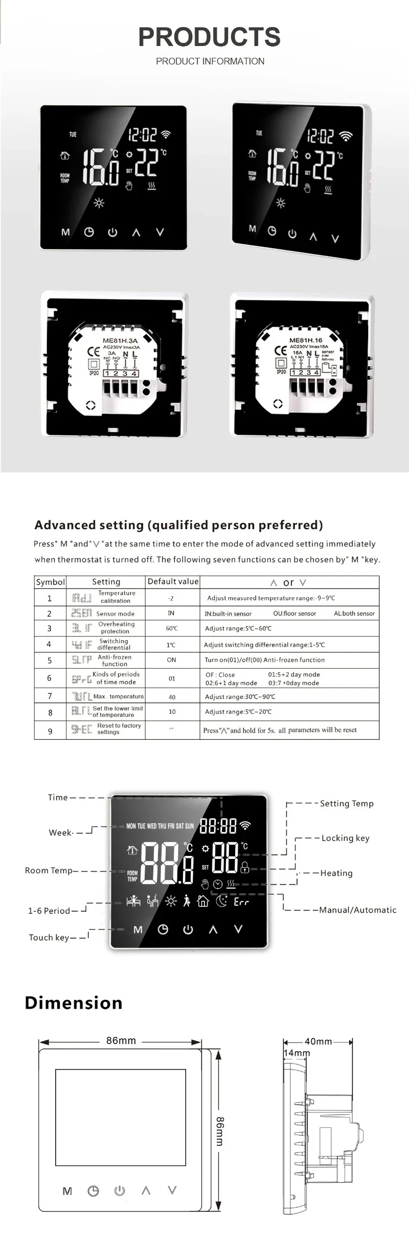 - Numéro de Modèle: ME81H WiFi Smart Thermostat