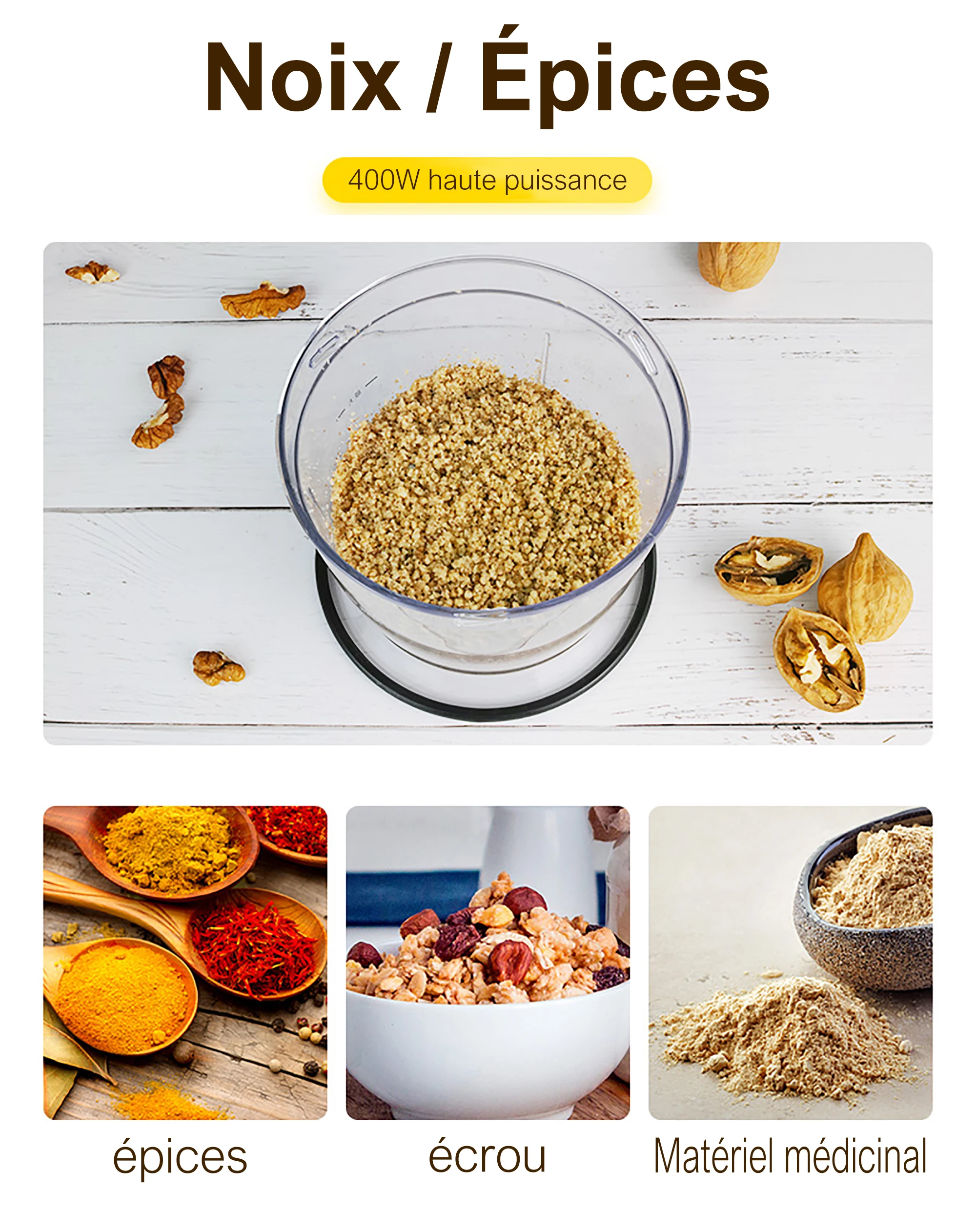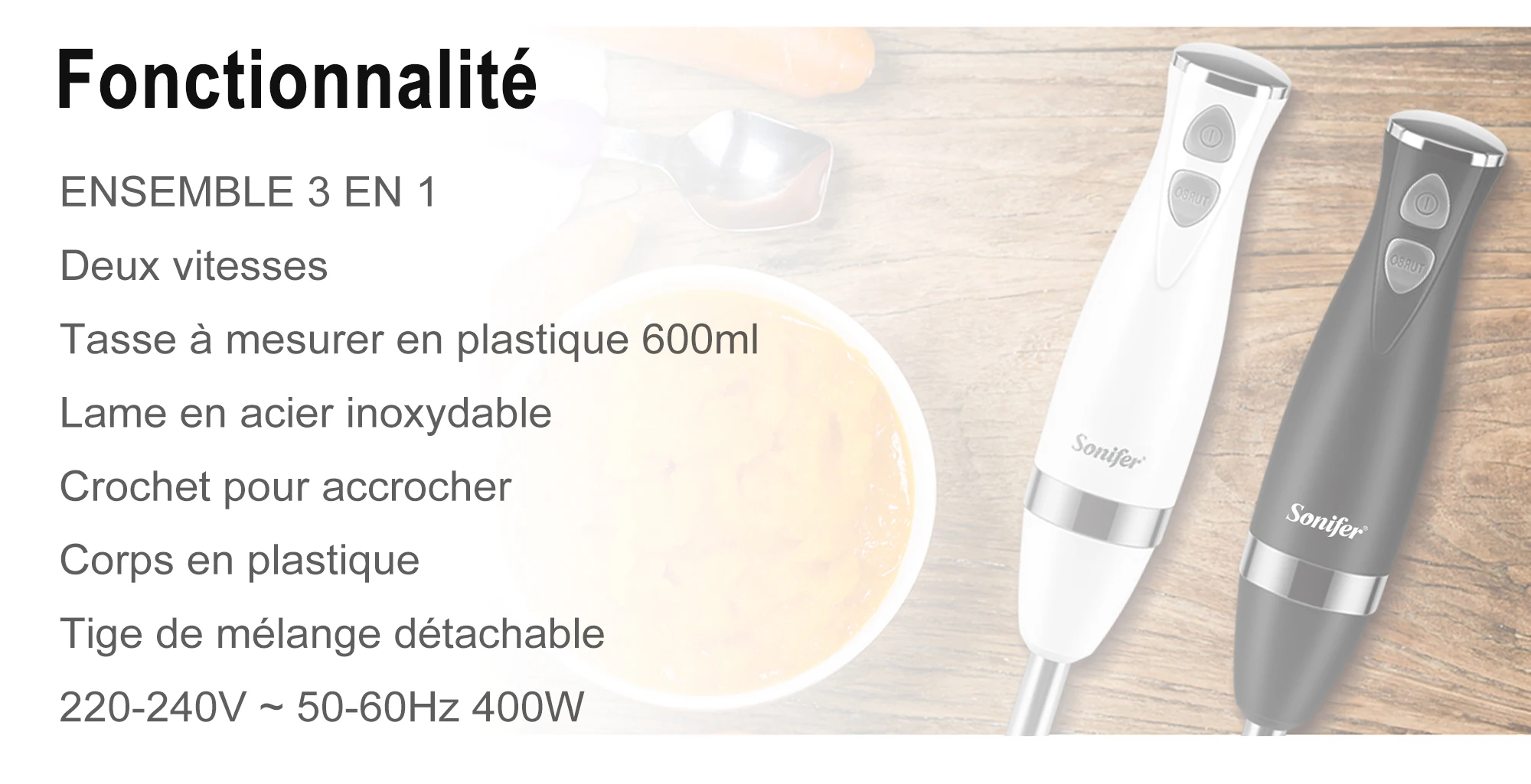 • Multifonctionnel avec ses diverses fonctions (purée, fouet, piler la glace)