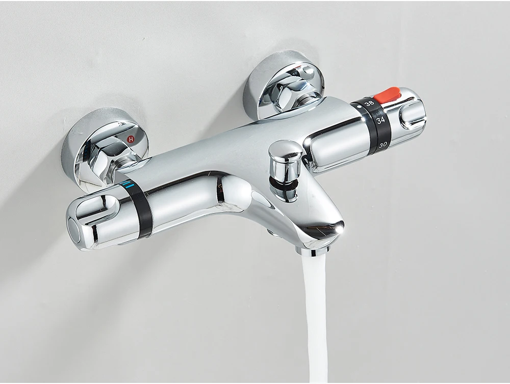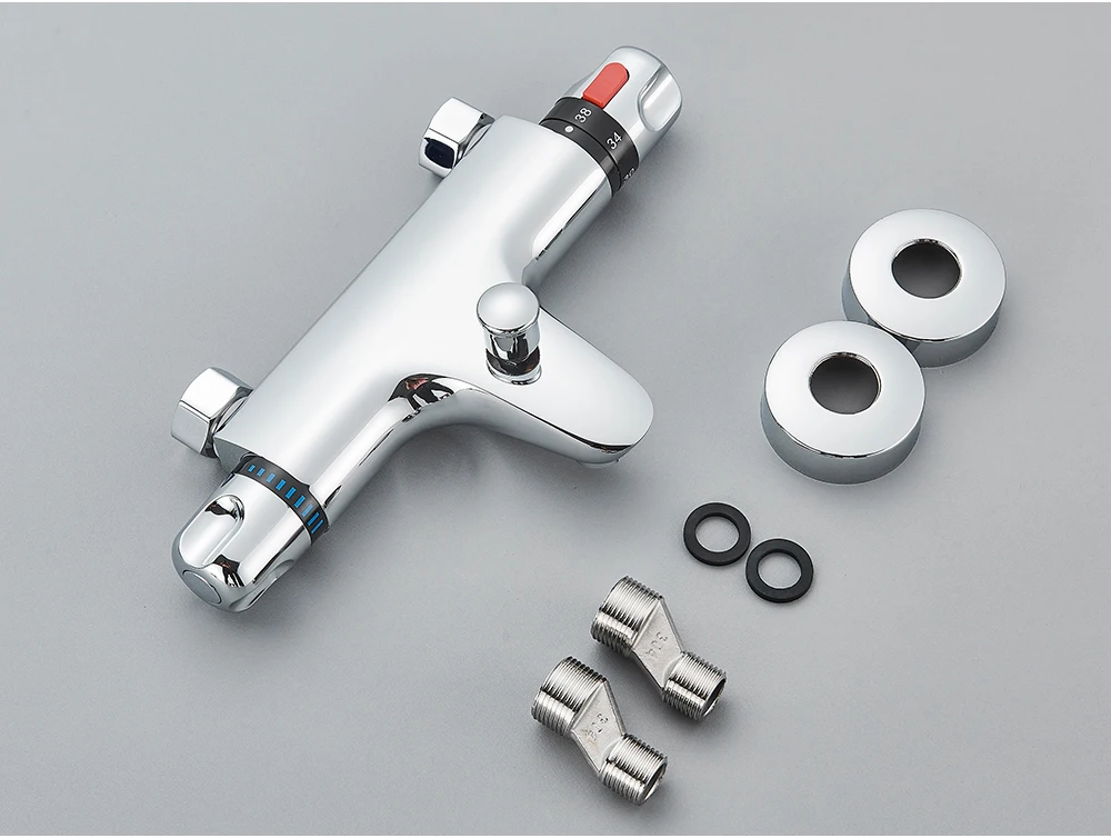 Robinet mitigeur de douche thermostatique noir, mitigeur à Thermostat chromé, mélangeurs de salle de bains et de douche, Valve d’arrêt d’eau