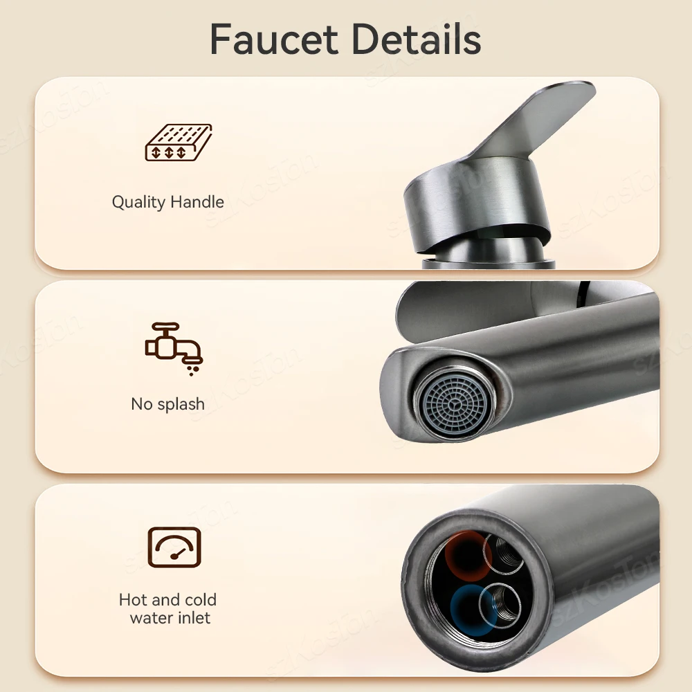 Bath Mixer Kitchen Faucet Stainless Steel Hot and Cold Water Tap Washbasin Basin Faucets Bathroom Bathtub Accessories Set Sink