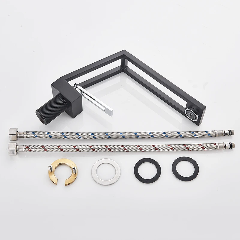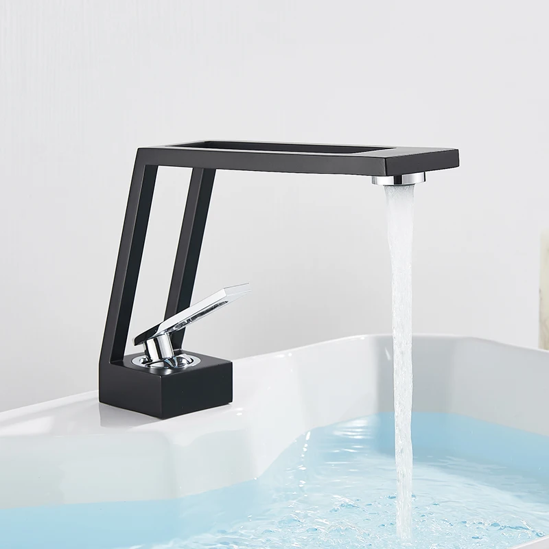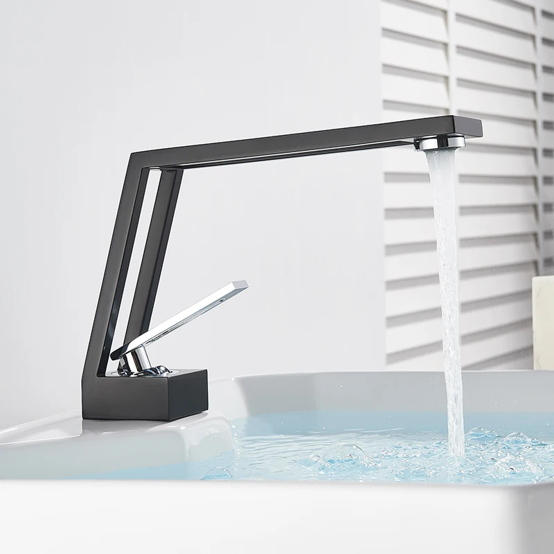 Robinet de salle de bain noir mat Bsain montage sur pont creux carré mitigeur monotrou eau froide chaude mitigeur grue