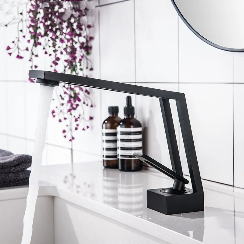 Mélangeur d’eau froide et chaude à poignée unique, robinet d’évier créatif creux monté sur le pont, salle de bains, vanité nordique, robinet d’évier grue