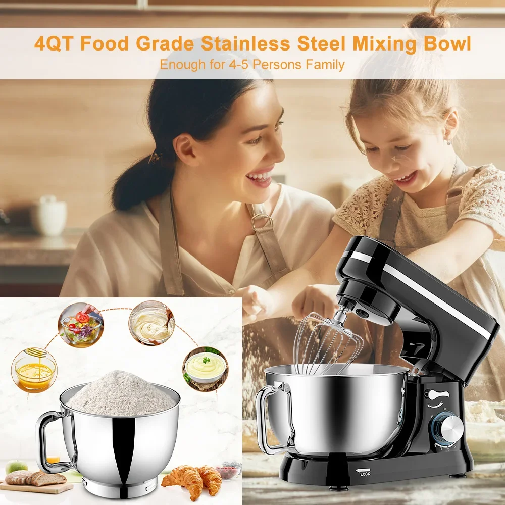 Mélangeur sur socle électrique de cuisine 380W, avec bol à mélanger de 4Qt et 3 accessoires, mélangeur de pâte à tête inclinable domestique à 8 vitesses