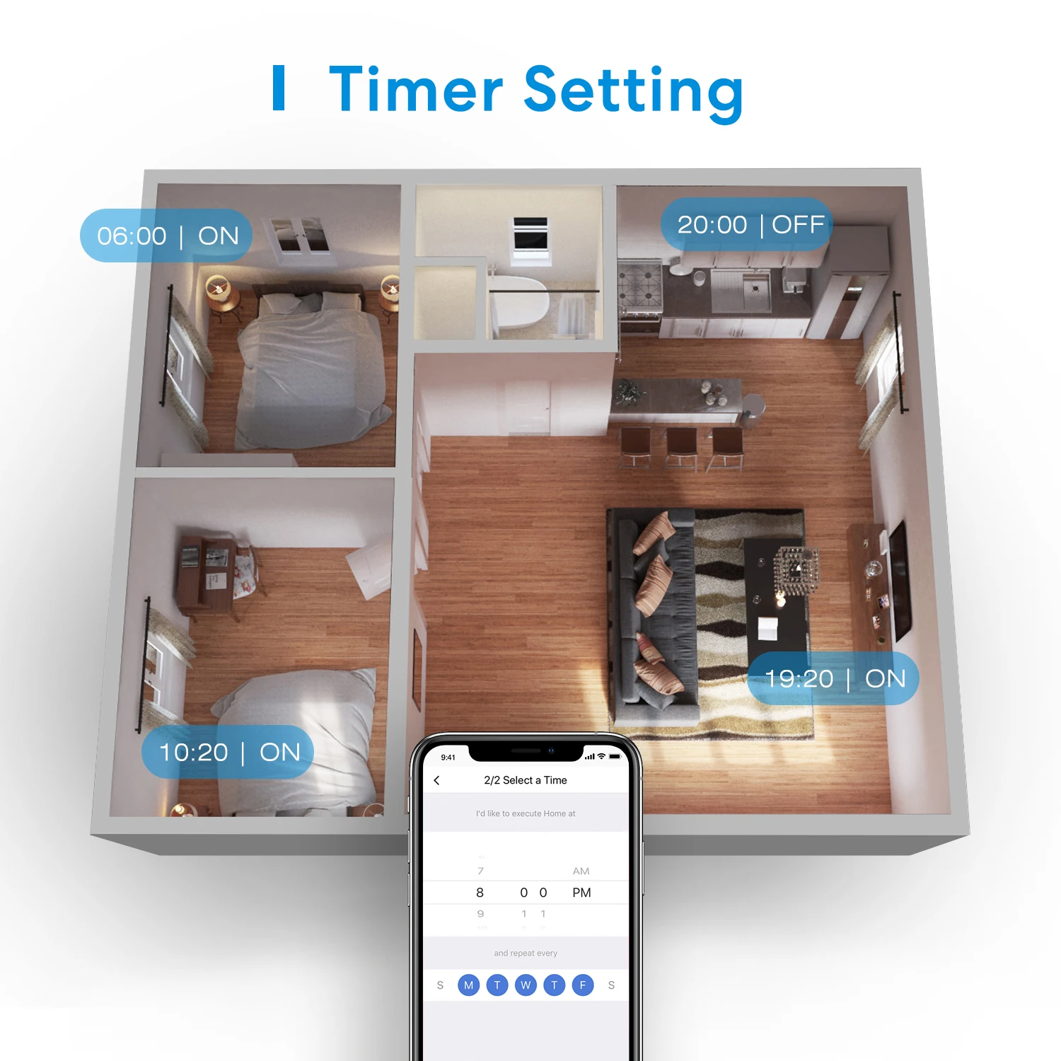 8. Créez des horaires marche/arrêt ou définissez des minuteries d’arrêt automatique pour qu’elles fonctionnent automatiquement. La fonction Sunrise/Sunset est prête.
