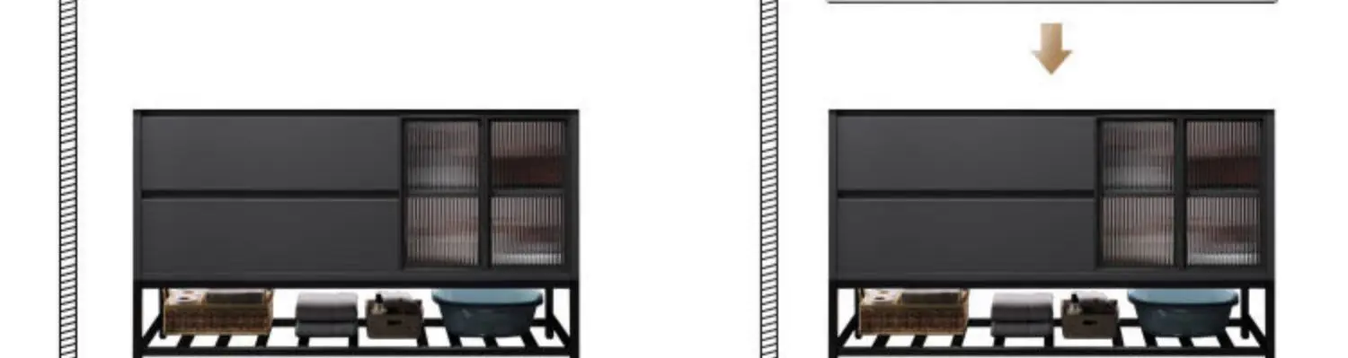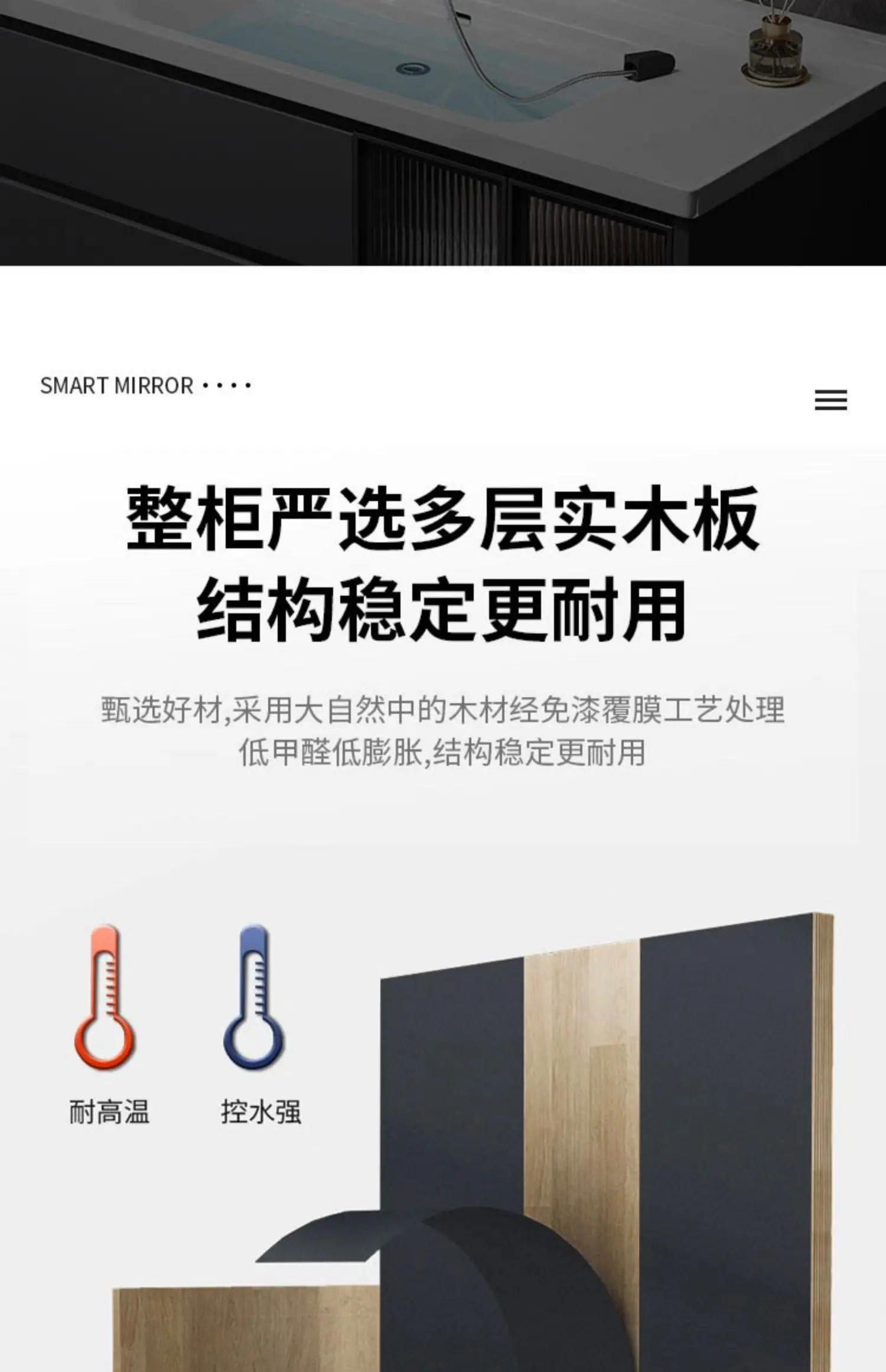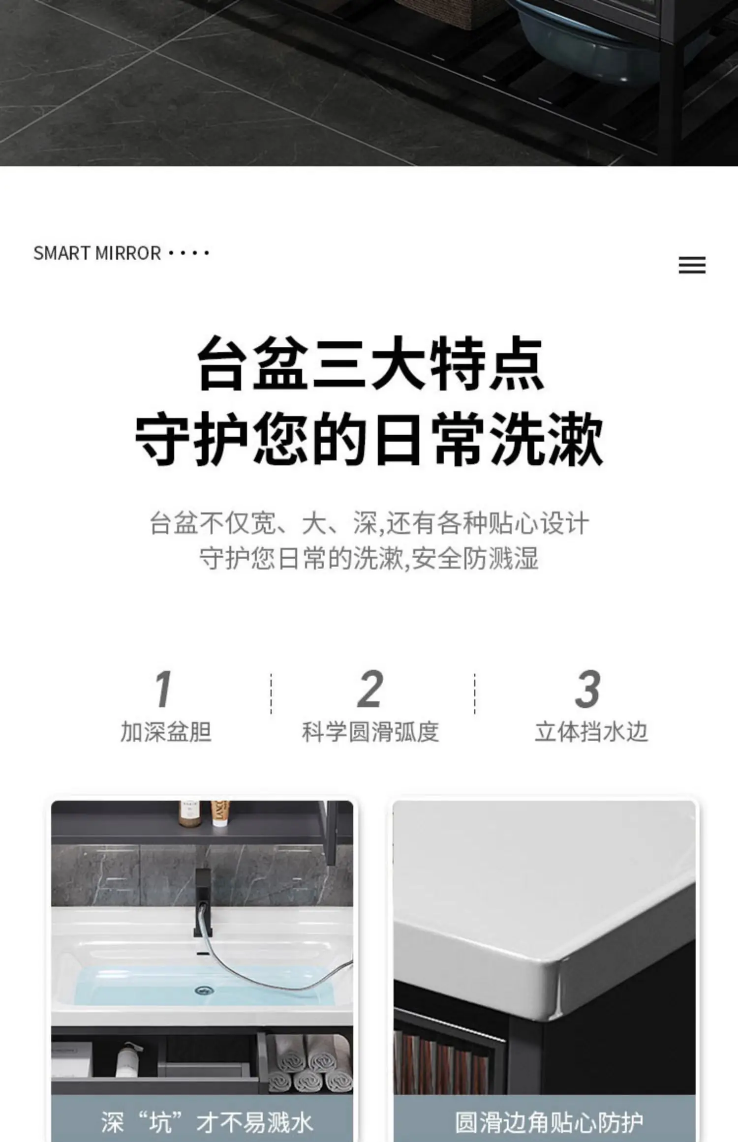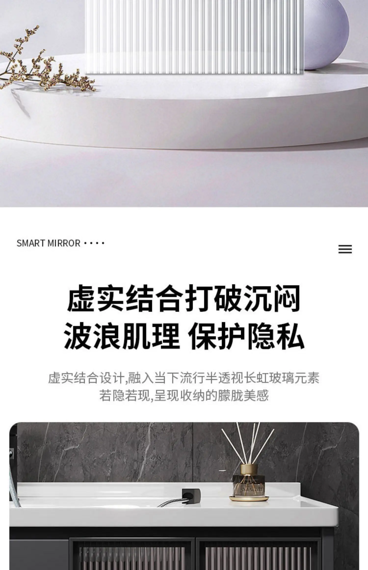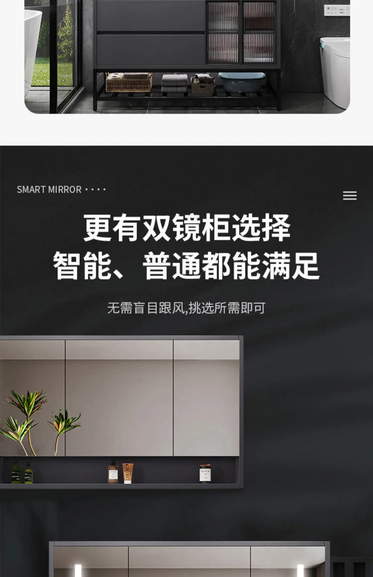 - Basin structure: Main cabinet + smart storage mirror cabinet