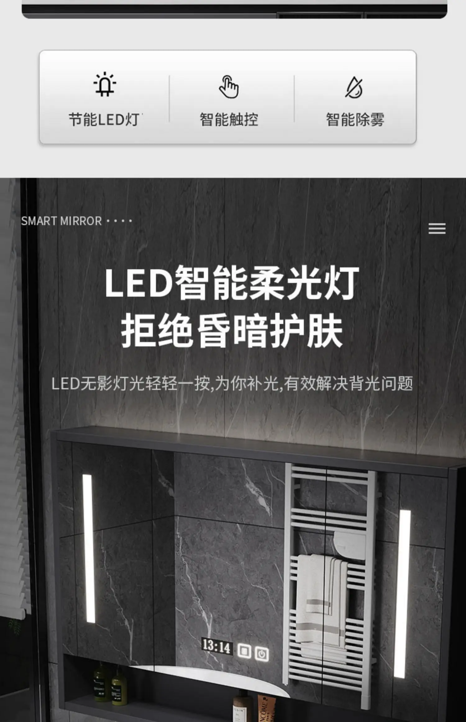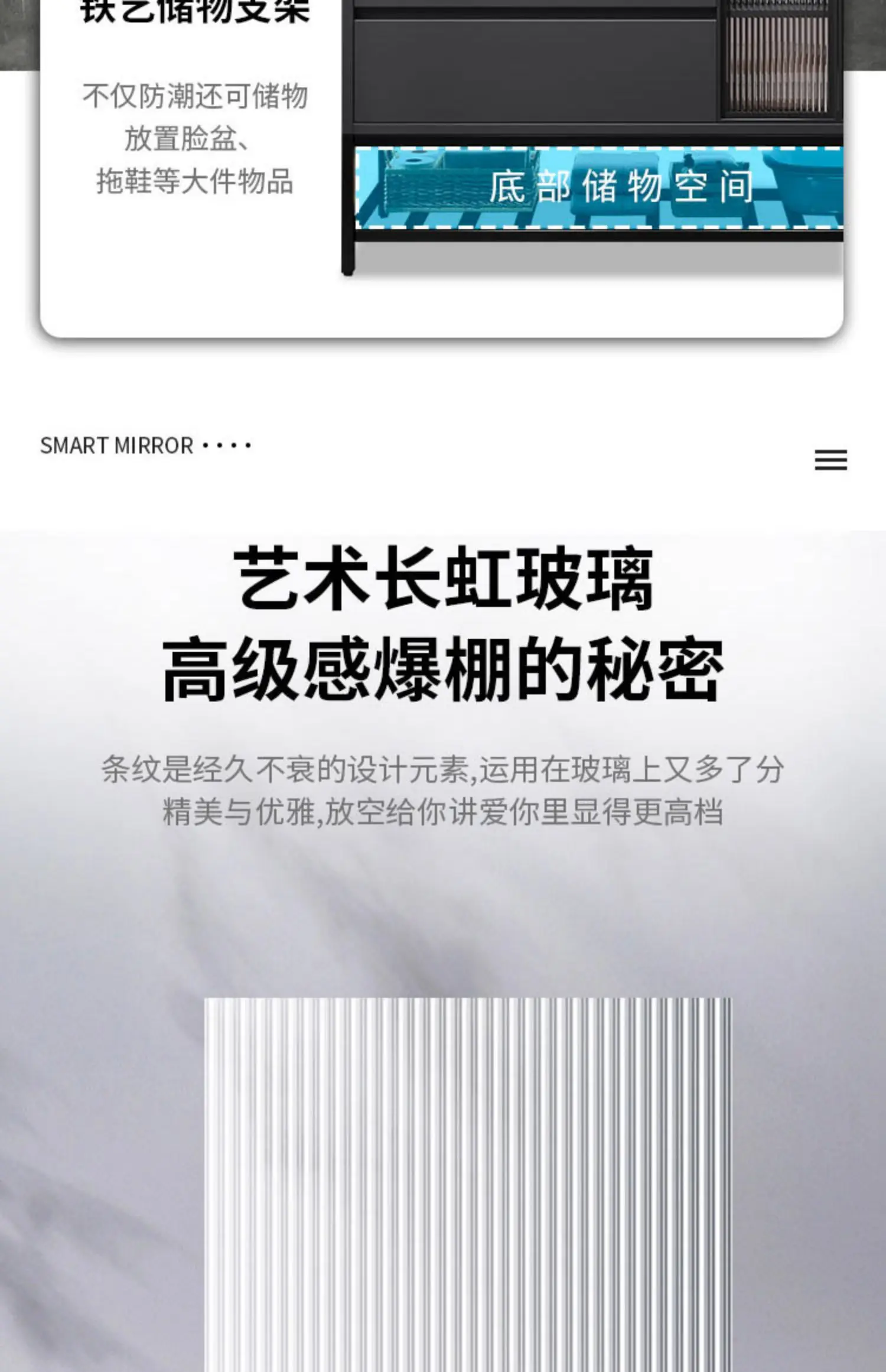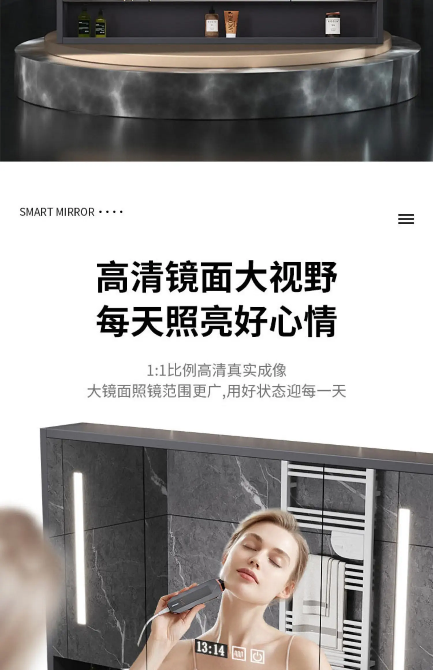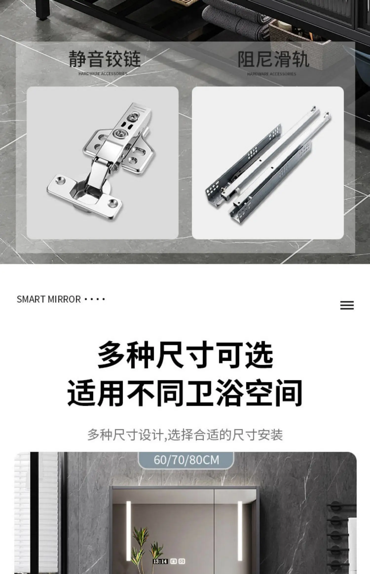 - Basin structure: Main cabinet + smart storage mirror cabinet
