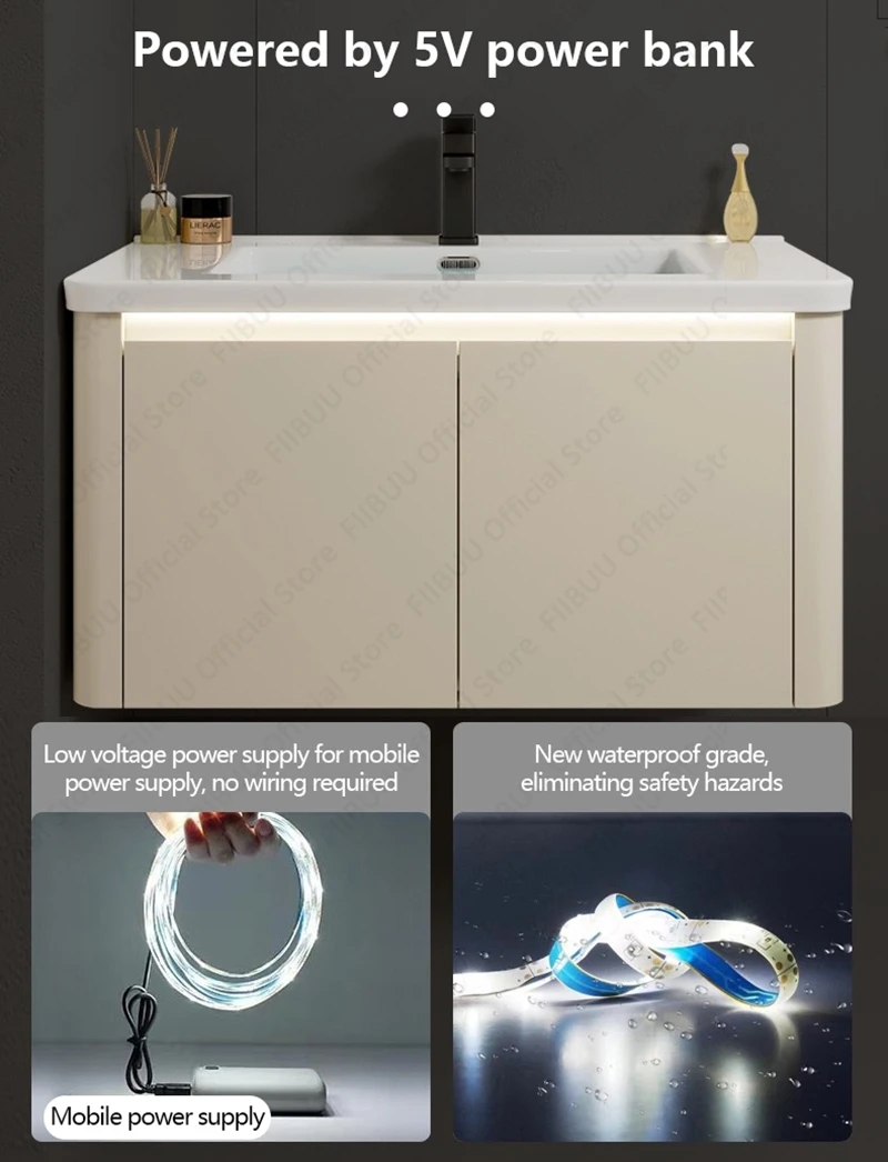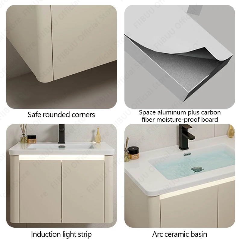 Les armoires et éviers ont des lignes épurées et des détails modernes.Fabriquée principalement avec des matériaux de haute qualité, cette armoire de salle de bain est robuste et durable.