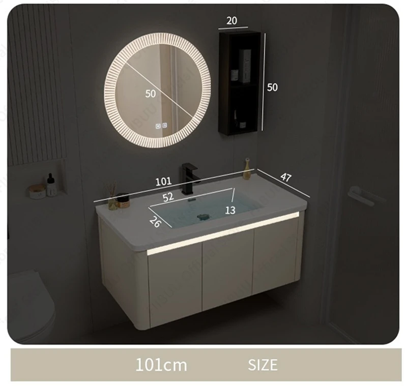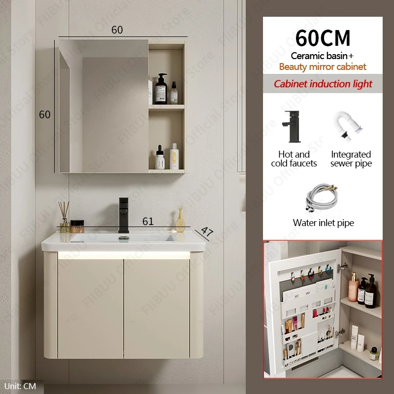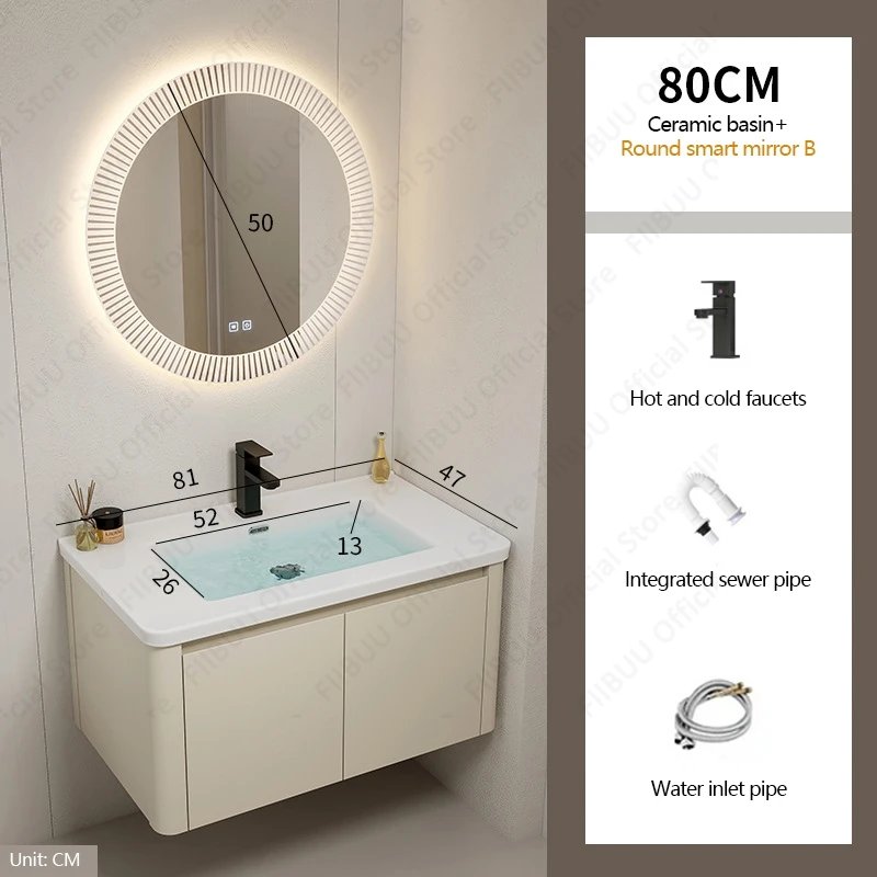 Ce meuble-lavabo de salle de bain est de conception simple et peut être associé à n’importe quel style de décoration de salle de bain.Couleurs simples, lignes simples, donnant une touche de mode.