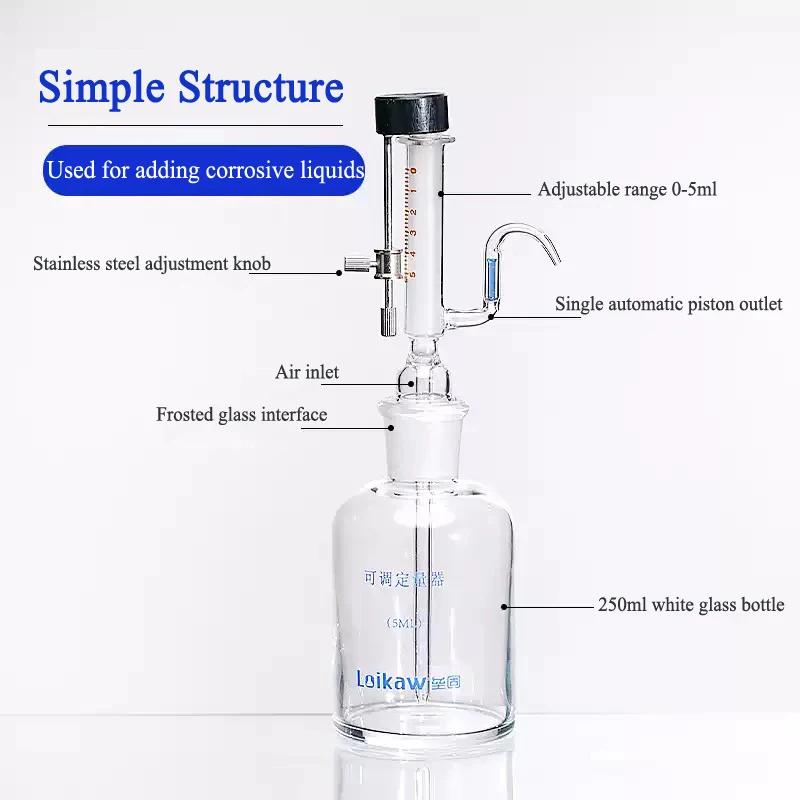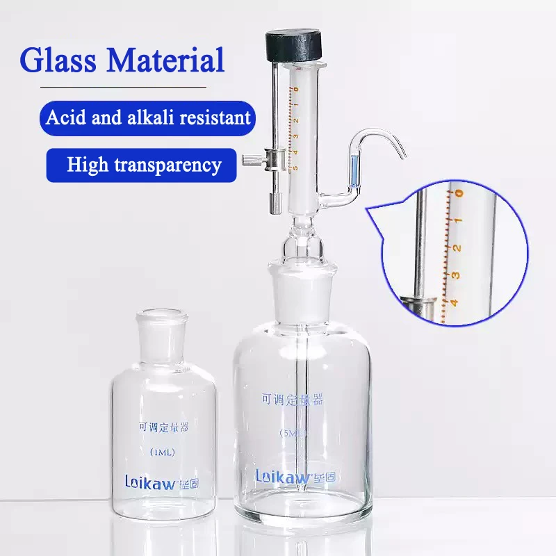 Micro distributeur de liquide réglable 1/5ml dispositif de dosage en verre laboratoire bouteille de pipette tout verre
