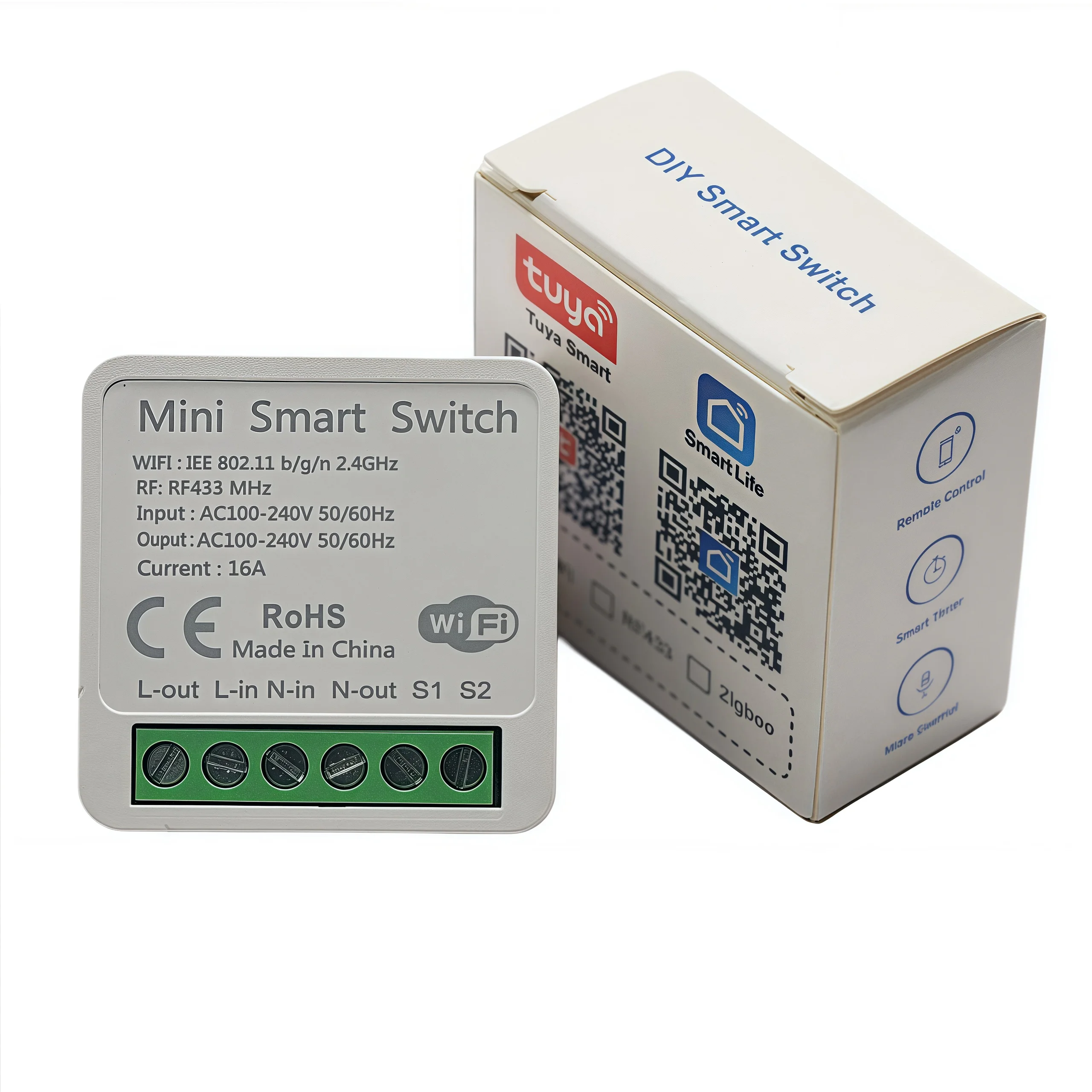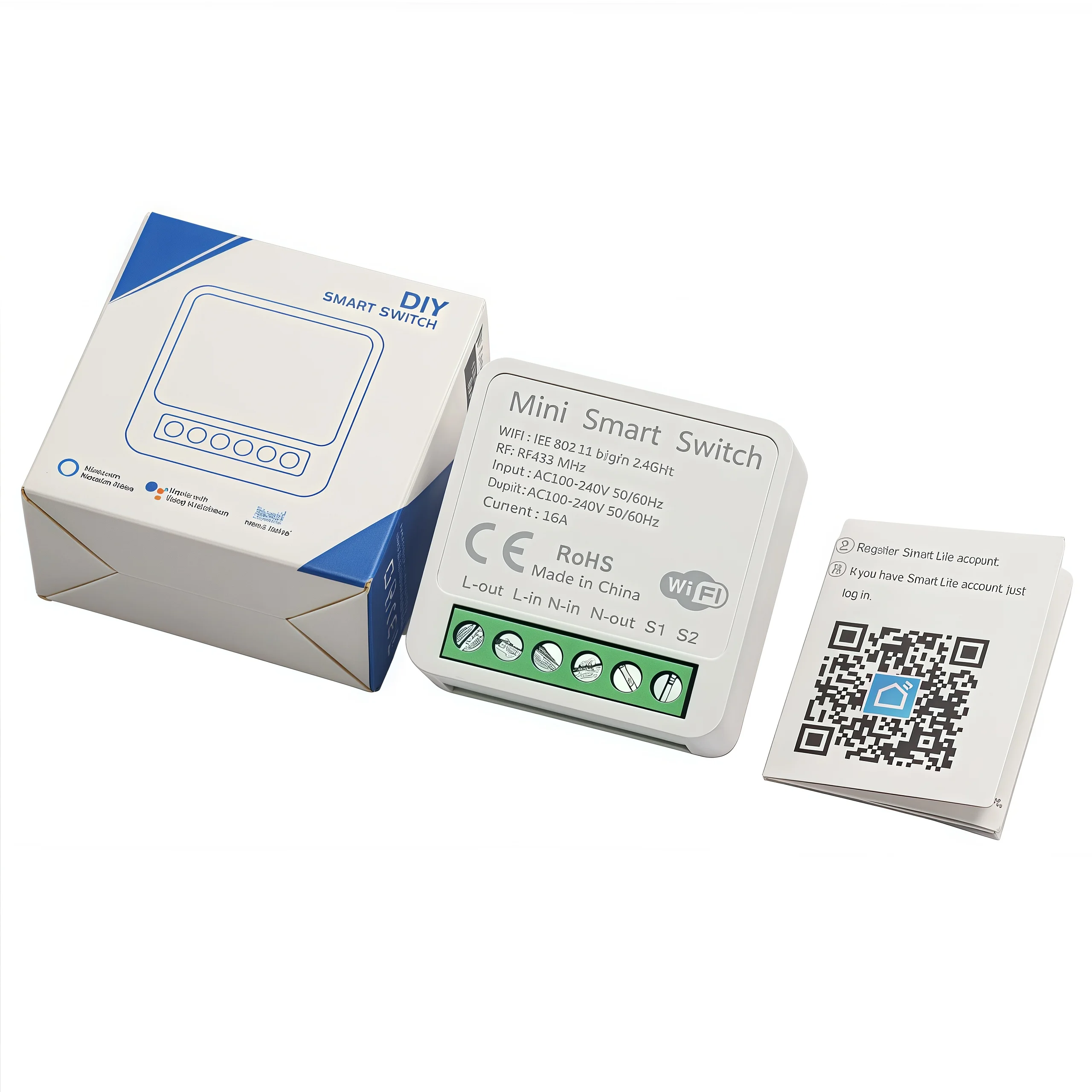 Mini commutateur intelligent WiFi 16A, interrupteurs d'éclairage à monter soi-même, contrôle sans fil, maison intelligente avec Tuya Smart Life Alexa Google Home