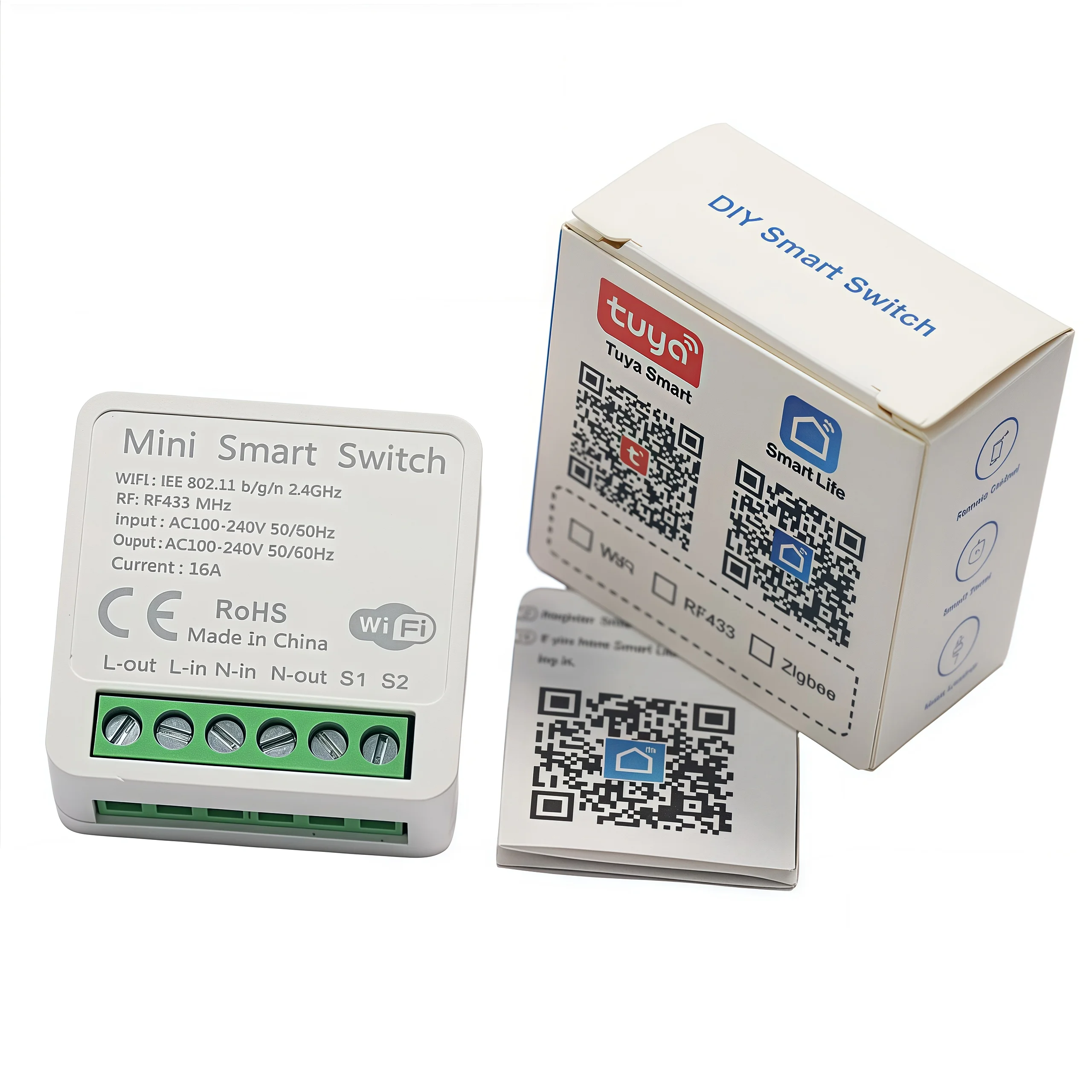Mini commutateur intelligent WiFi 16A, interrupteurs d’éclairage à monter soi-même, contrôle sans fil, maison intelligente avec Tuya Smart Life Alexa Google Home
