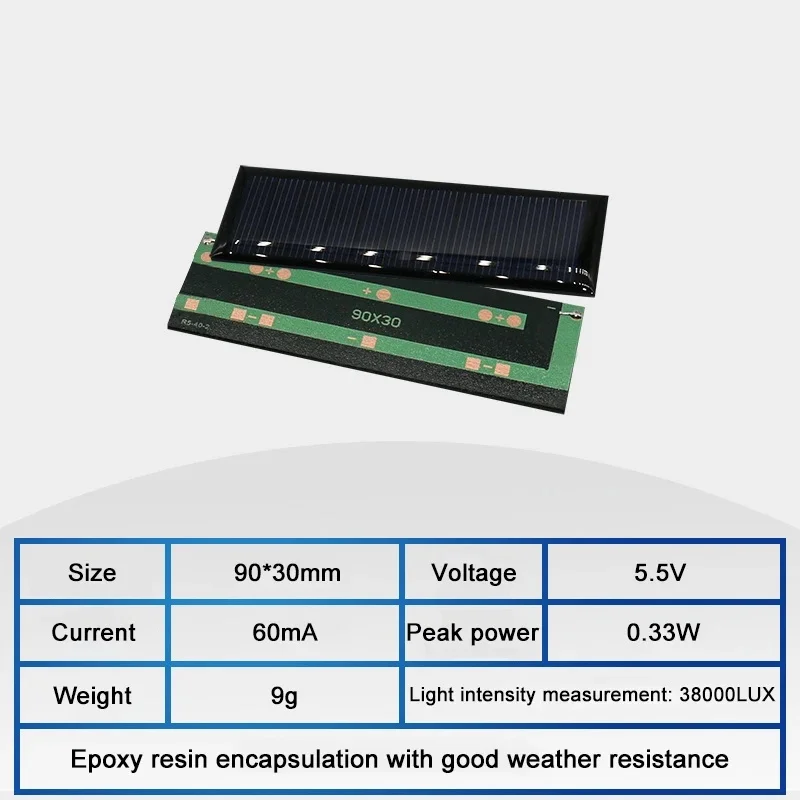 Panneau solaire 5,5 V 60 mA 90 x 30 mm