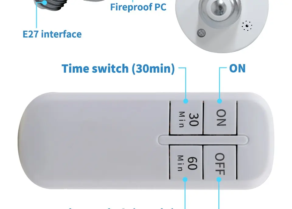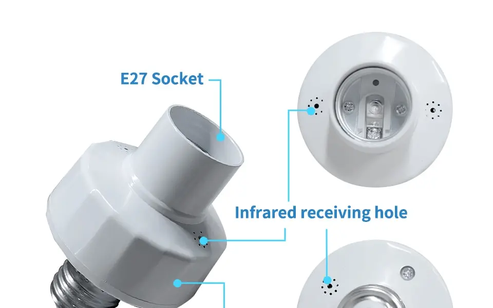 • Douille de culot d’ampoule intelligente :La douille de base d’ampoule intelligente s’allume et s’éteint automatiquement lorsque vous utilisez la télécommande.