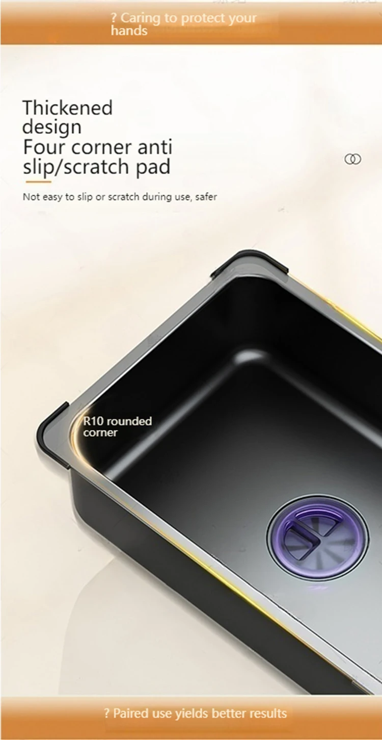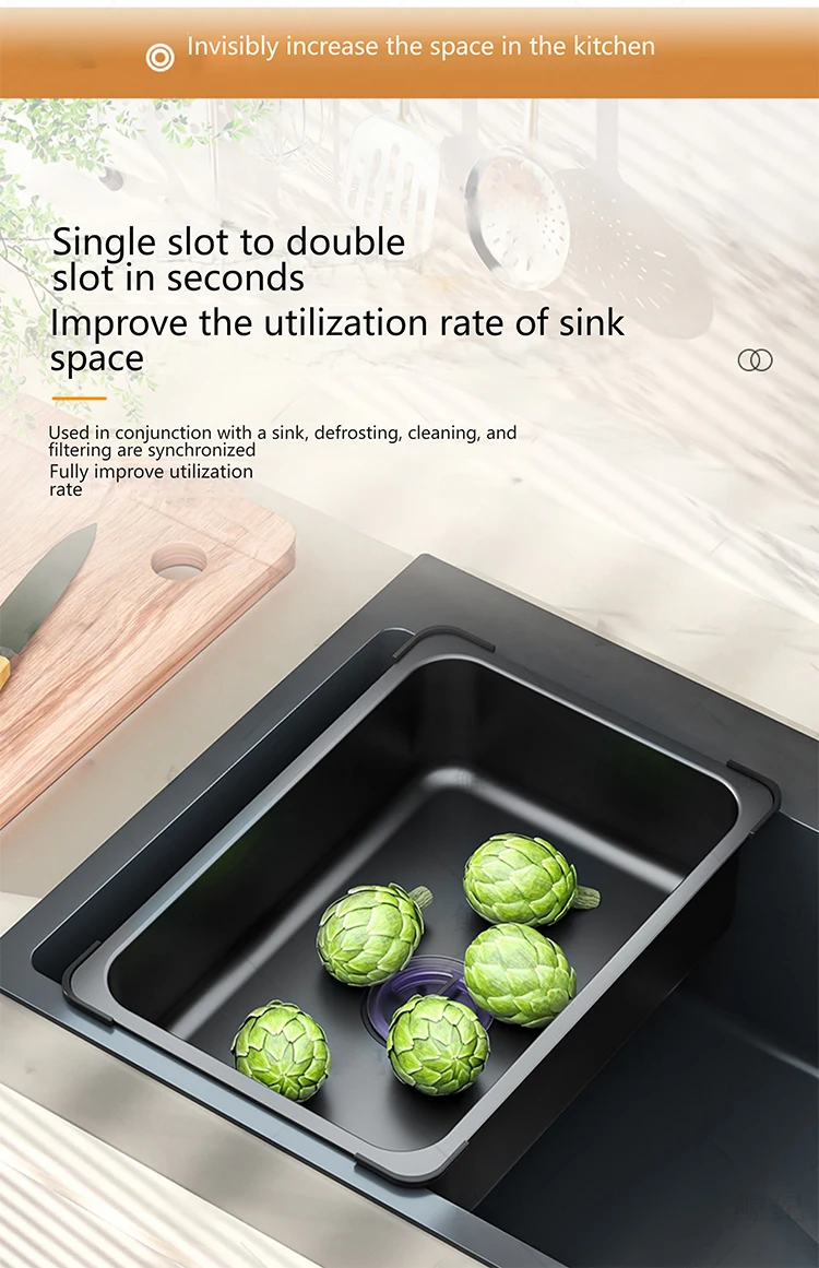 Conçu pour être compatible avec la plupart des éviers. Les ailes d’évier peuvent être accrochées du dessus de l’évier ou peuvent être utilisées indépendamment comme évier secondaire partout utilisant les embouts en caoutchouc au bas.