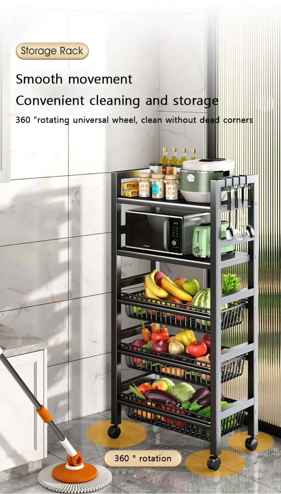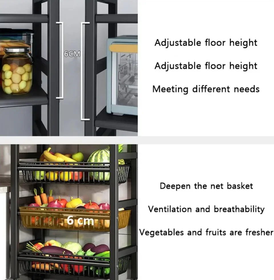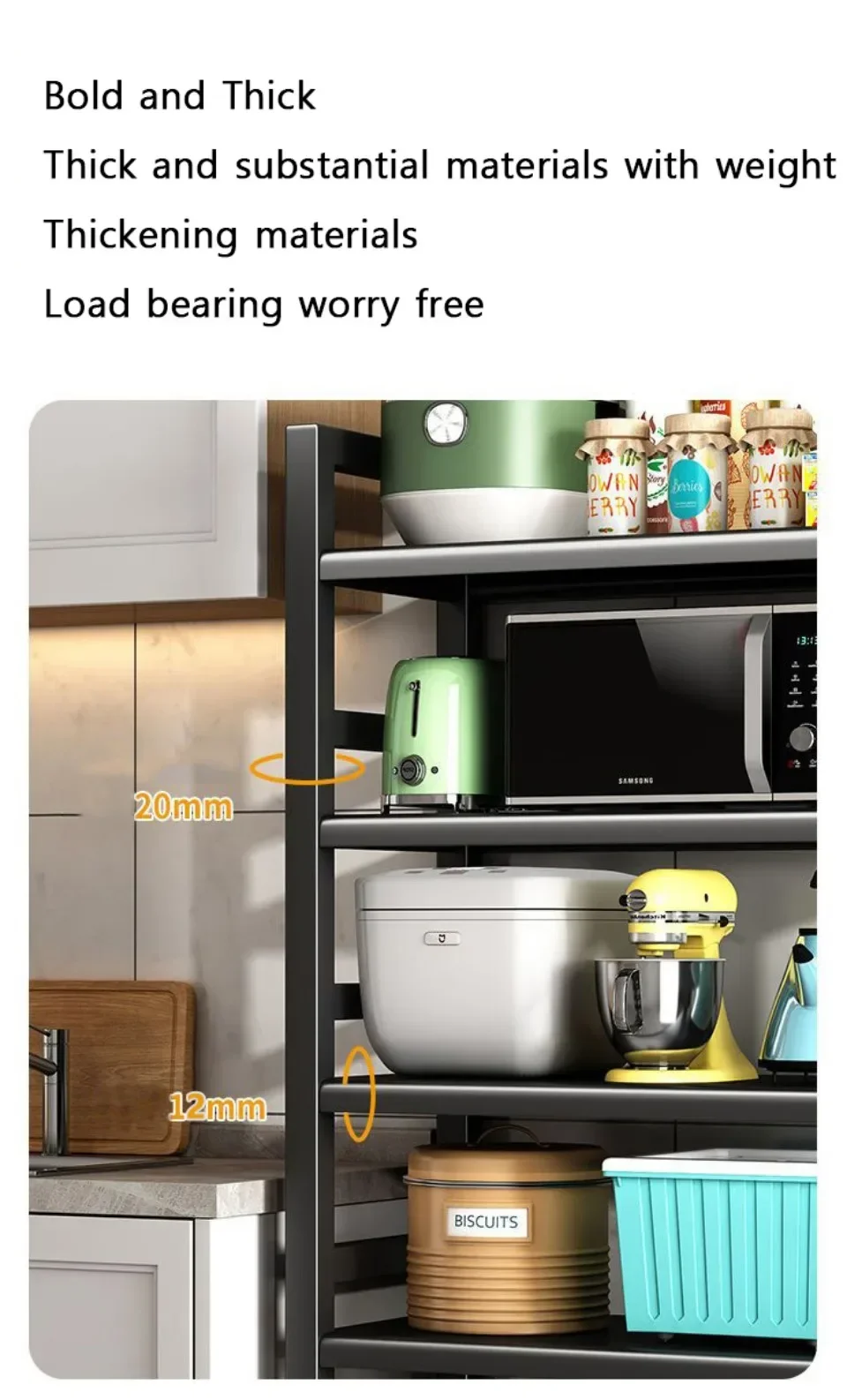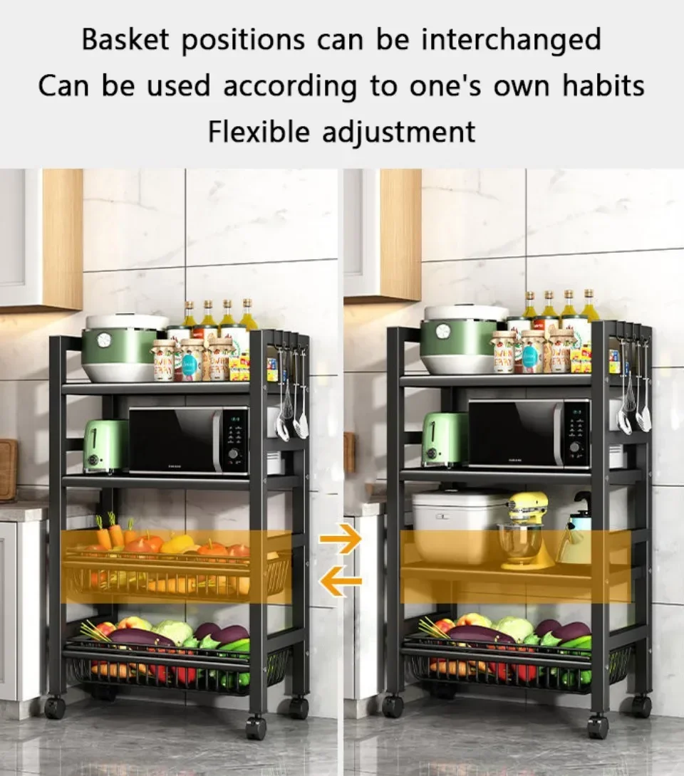 Panier de rangement multicouche pour cuisine Four au sol Chariot pour micro-ondes Panier pour casseroles Support pour chariot à fruits Panier de rangement pour chariot de cuisine