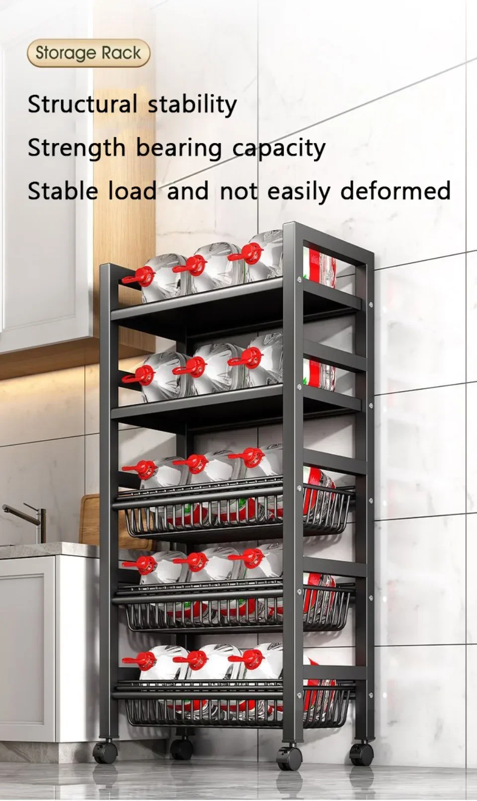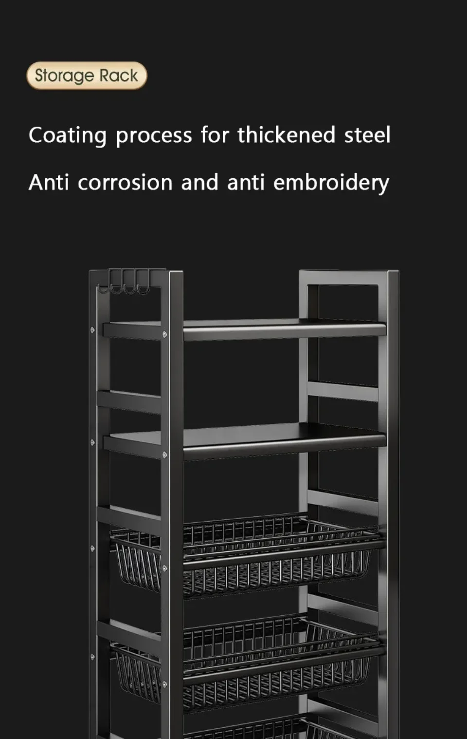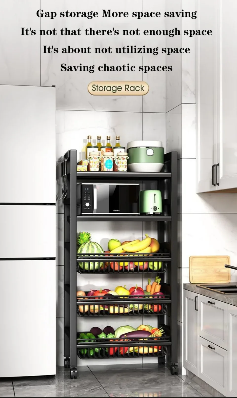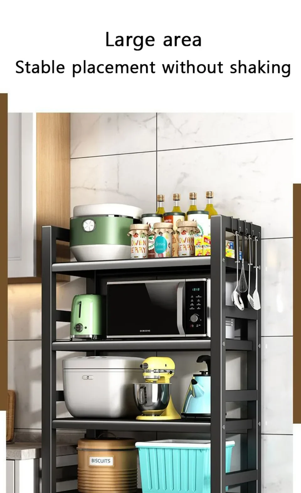 Panier de rangement multicouche pour cuisine Four au sol Chariot pour micro-ondes Panier pour casseroles Support pour chariot à fruits Panier de rangement pour chariot de cuisine