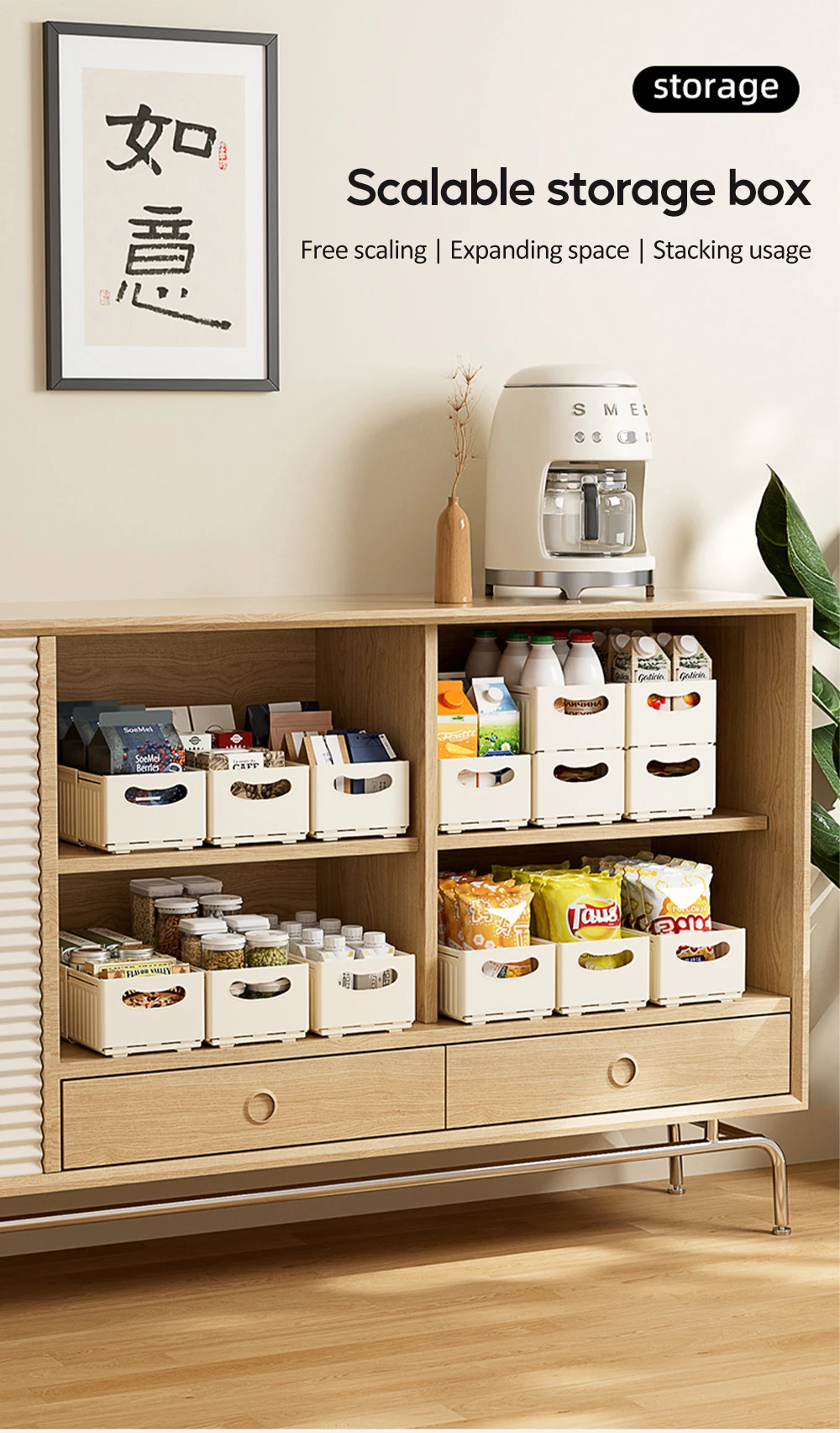 Boîte de rangement rétractable multifonctionnelle pour réfrigérateur, organisateur de cuisine