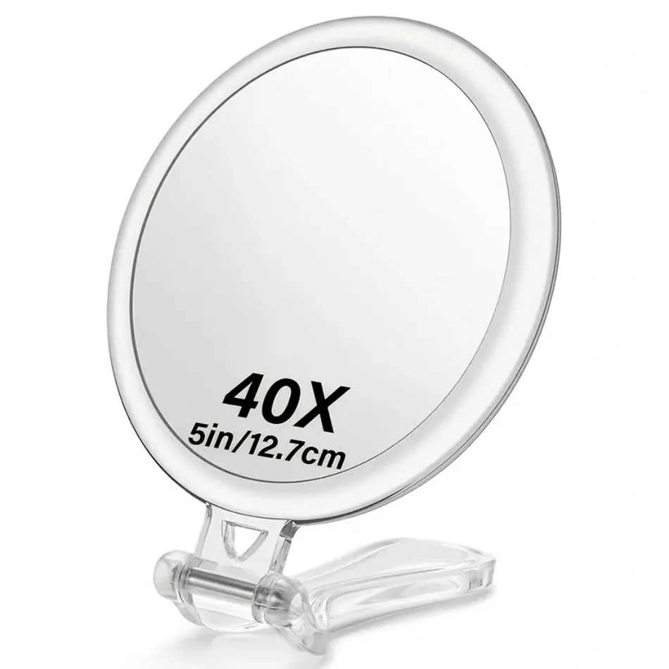Miroir à main de beauté, miroir grossissant 30X sur support, miroir grossissant double face avec grossissement 30X/1X, 360 ° Han réglable