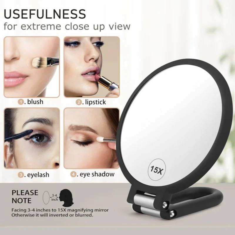 Miroir à main grossissant Double face, miroir à main grossissant 1x15x, support pliable de voyage, coiffeuse réglableMiroir à main grossissant Double face, miroir à main grossissant 1x15x, support pliable de voyage, coiffeuse réglable