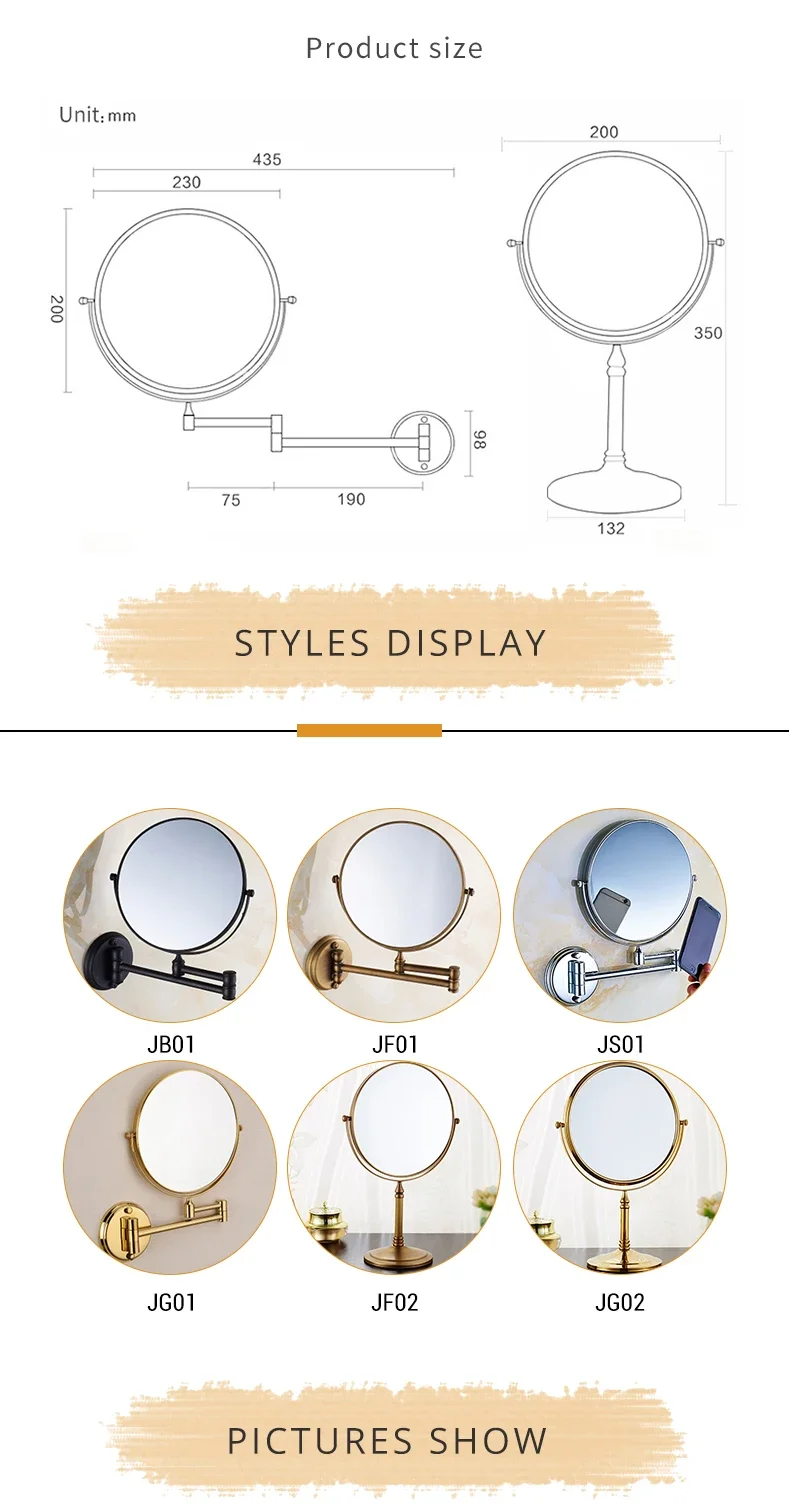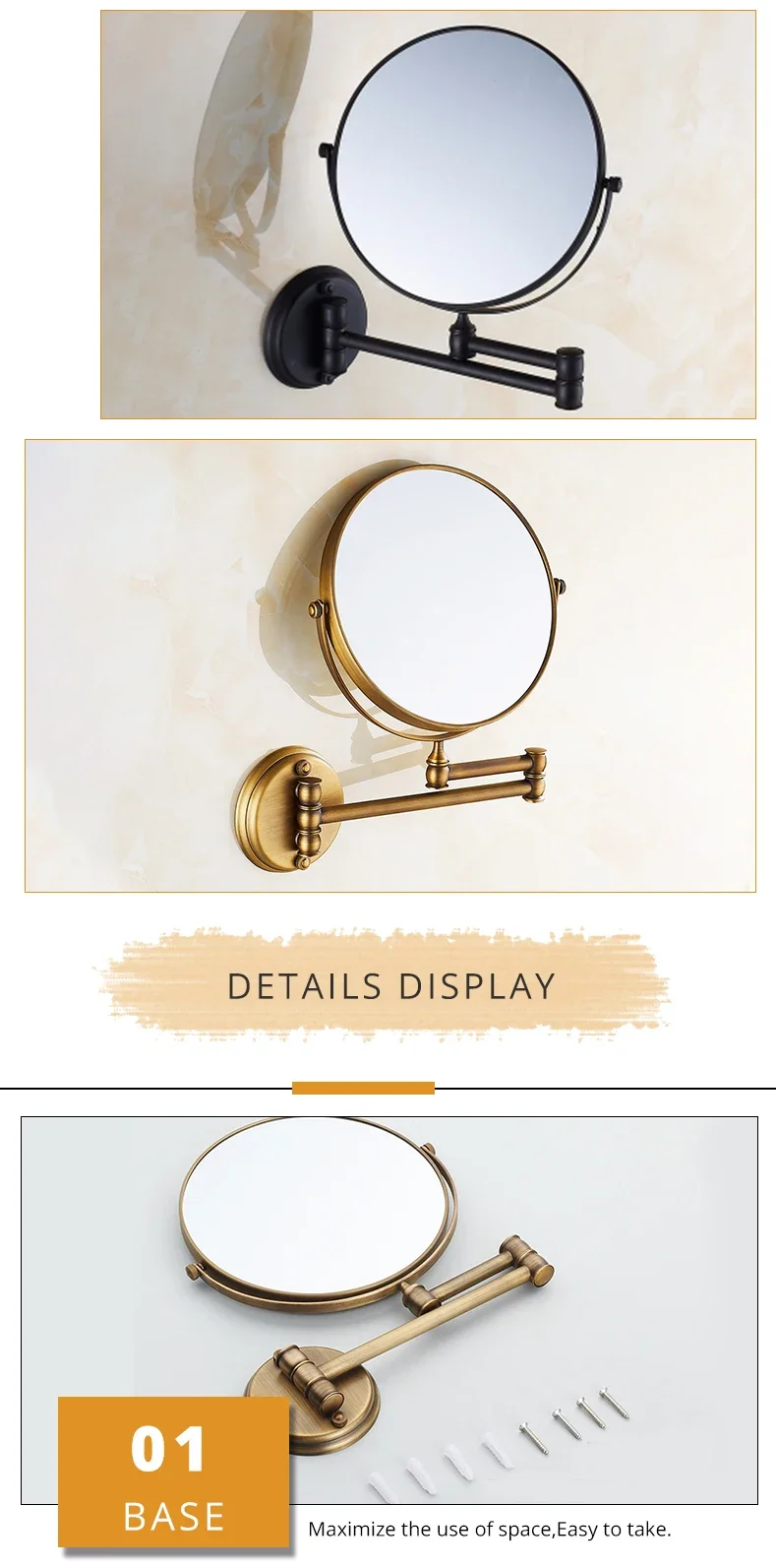 Miroir de bain grossissement 1X/3X, finition murale, accessoires de salle de bains, miroir cosmétique réglable, miroir de salle de bains à 2 faces