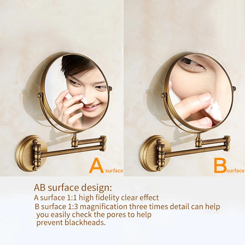 Miroir de bain grossissement 1X/3X, finition murale, accessoires de salle de bains, miroir cosmétique réglable, miroir de salle de bains à 2 facesMiroir de bain grossissement 1X/3X, finition murale, accessoires de salle de bains, miroir cosmétique réglable, miroir de salle de bains à 2 faces