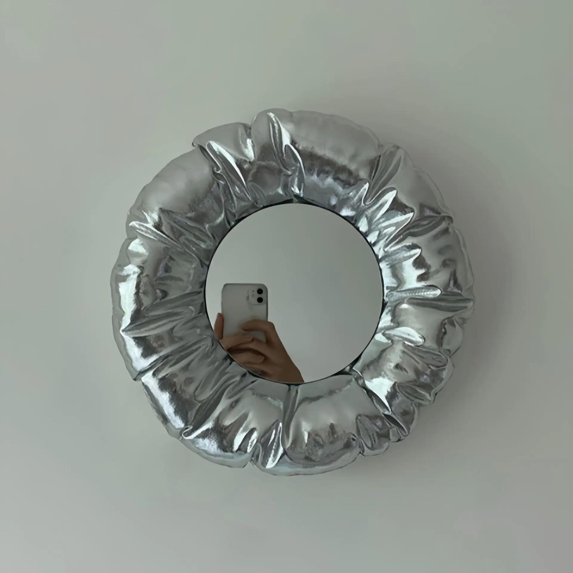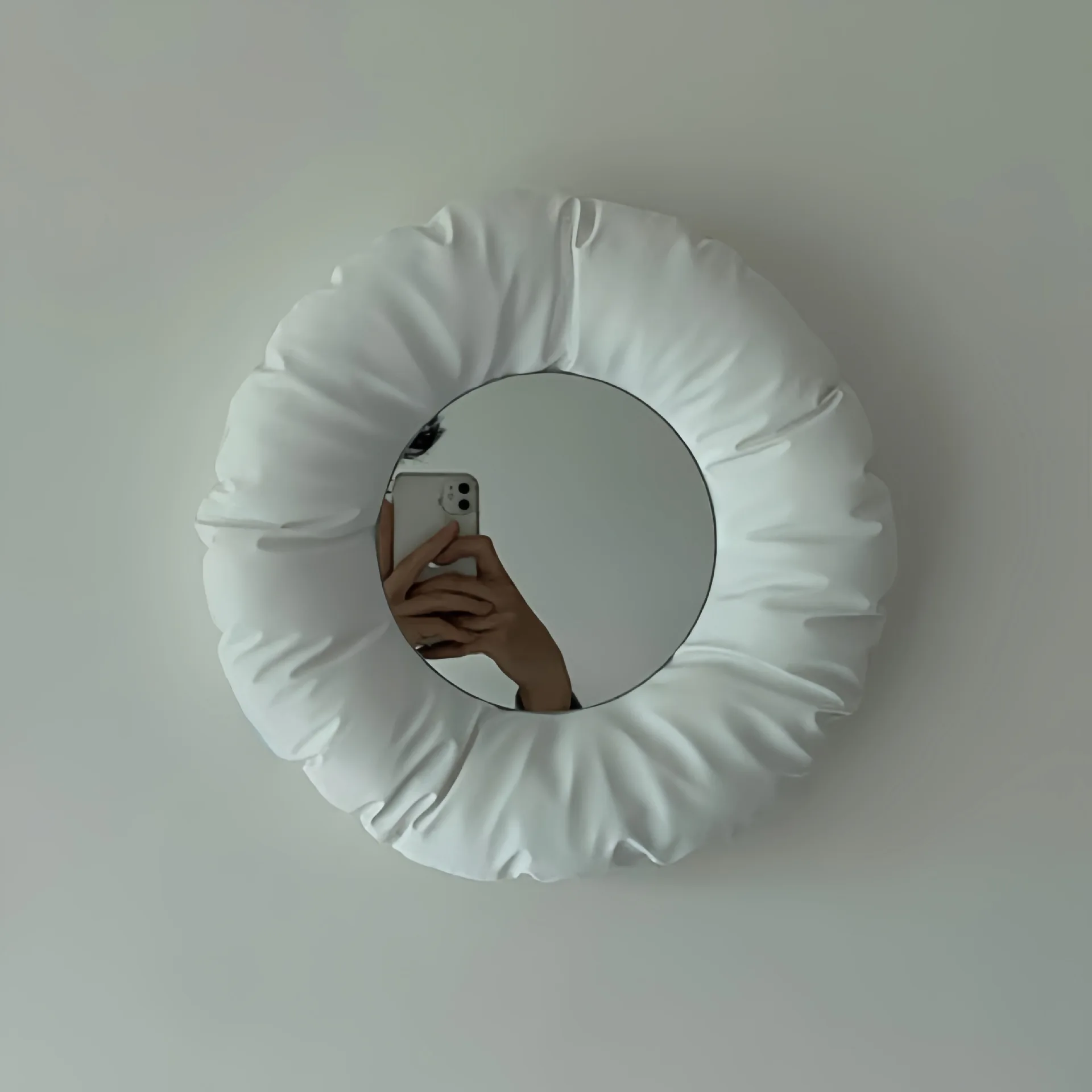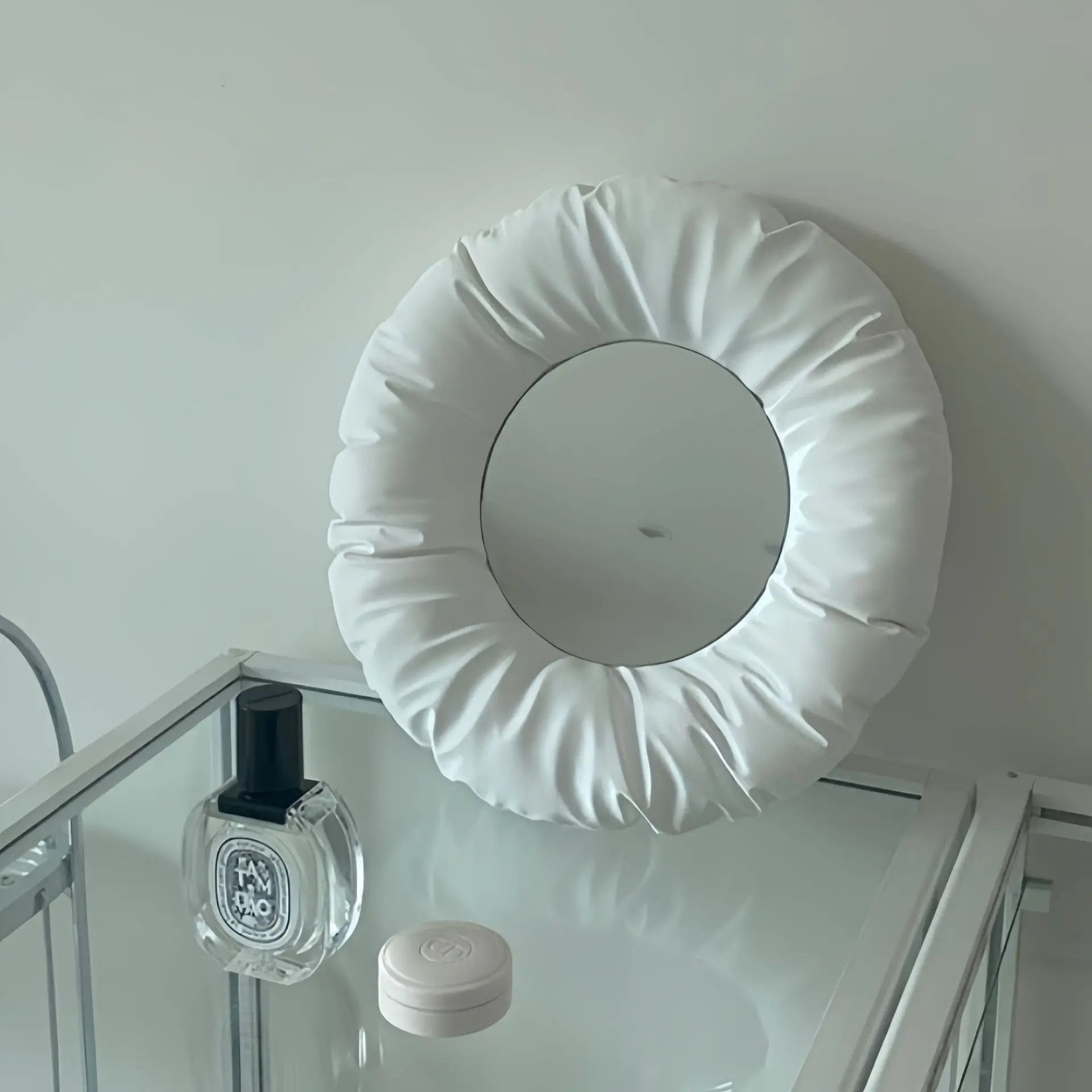 Miroir de forme ronde Ins, décoration murale créative suspendue pour salon et chambre à coucher, miroir de maquillage en coton, décoration murale semi-ronde